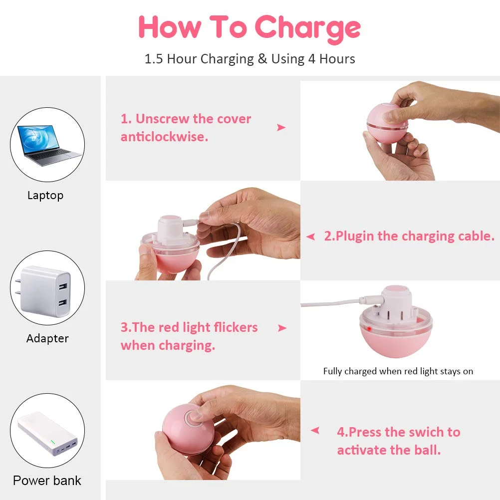Дизайн с двумя цветными режимами, шар можно переключить с Красный светильник и светильник RGB, быстро привлекая внимание ваших котят при катании. USB Перезаряжаемые дизайн, нет необходимости тратить деньги покупке аккумулятора зарядки 1,5 часов может обеспечить до 4 часов развлечений и упражнения для вашего котенка. Экономьте свои деньги и больше окружающей среды.