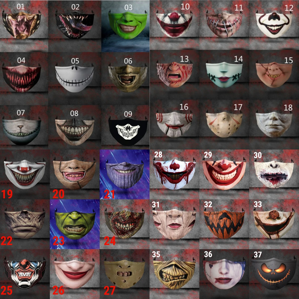 Клоун зомби-Халк-танос Косплэй Хэллоуин Рождество рот маски для взр...