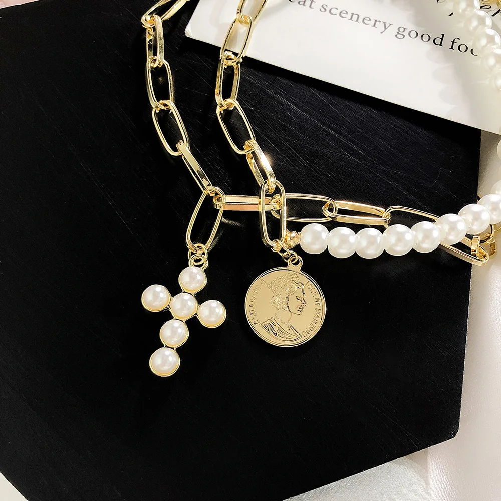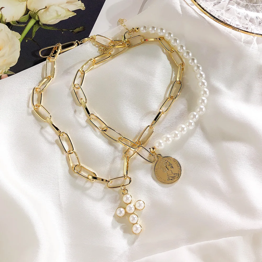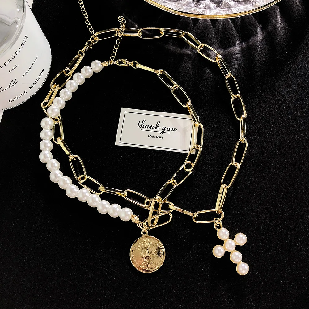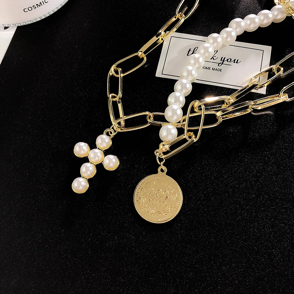 Ожерелье женское с подвеской в виде креста, 2 шт.компл., золотого ц...