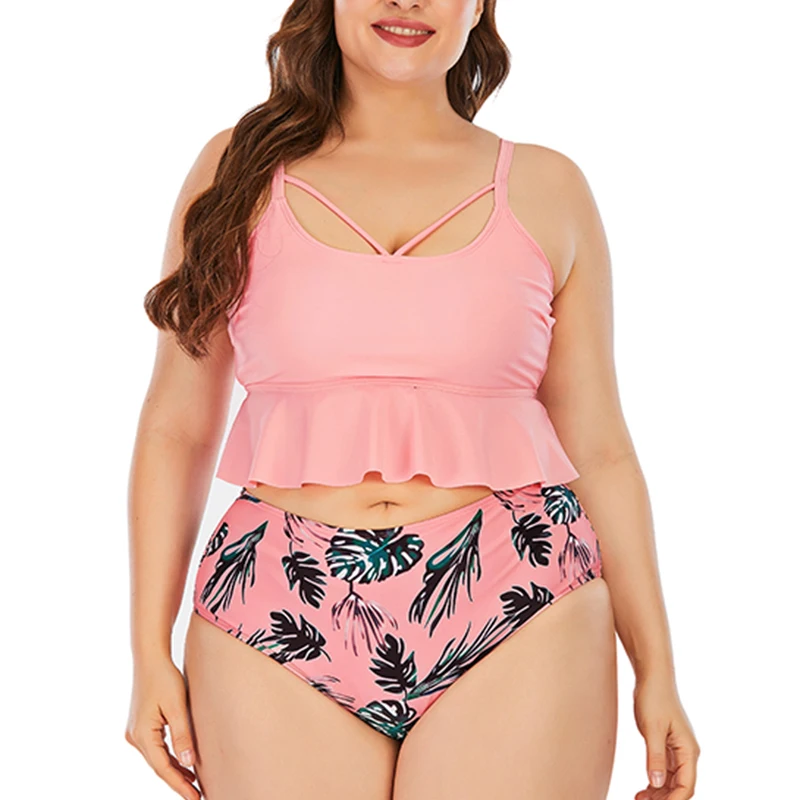 Бикини с высокой талией, женский купальник с рюшами, размера плюс, купальники большого размера, женские Танкини из двух частей, пляжная одежда