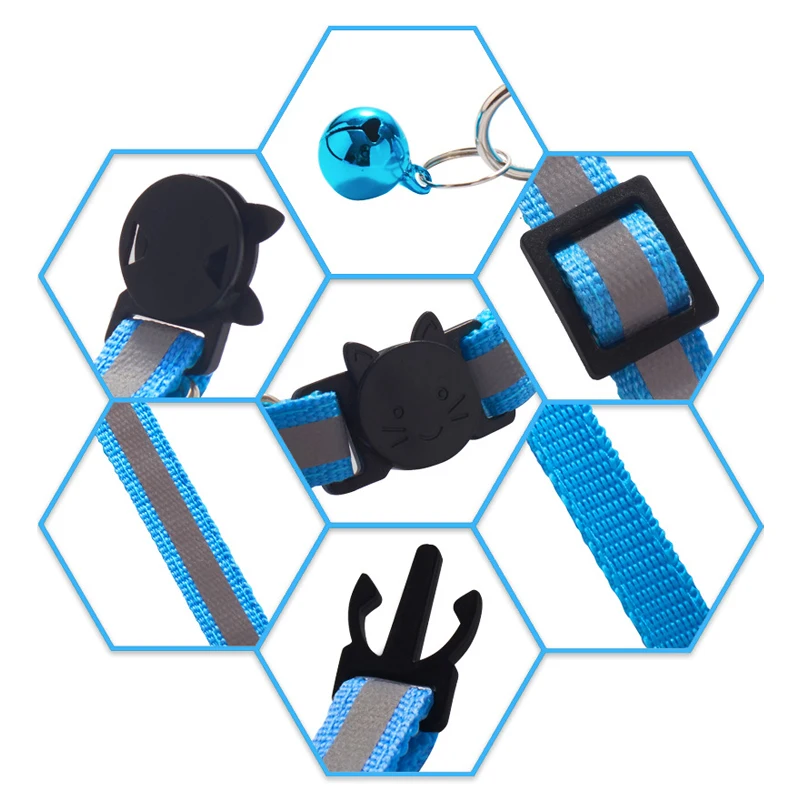 Светоотражающий ошейник для кошек с колокольчиком, быстросъемный ош...