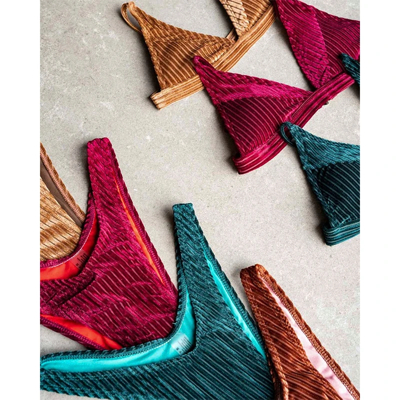 Бархатное бикини In-X 2021, треугольный купальник, Женский комплект из 2 предметов с высоким вырезом, однотонный купальник, женский сексуальный купальный костюм, пляжная одежда, бикини