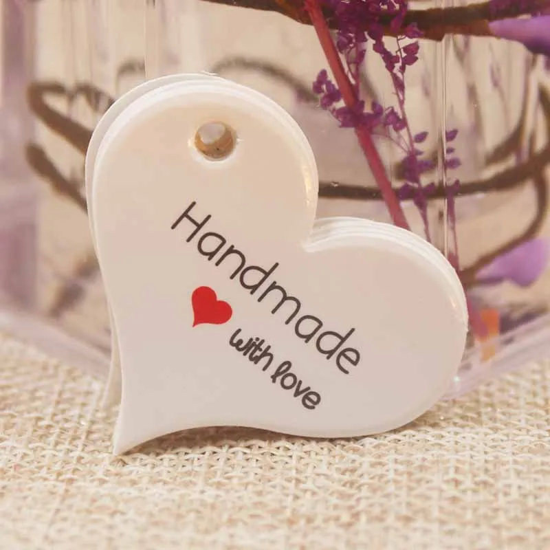 100 шт. Белыйкрафт-красный ярлык с сердечками, бумага в форме сердц...