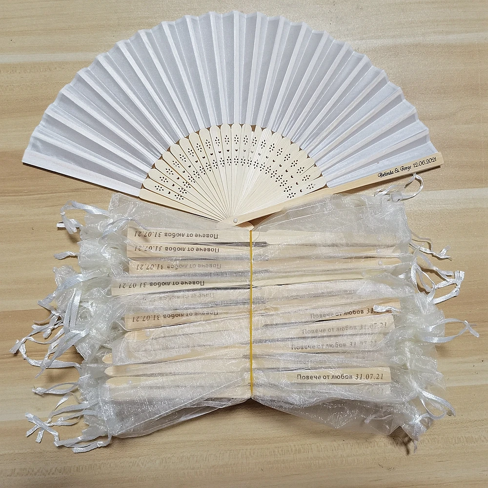 Свадебный складной веер с гравировкой на заказ, 24 шт., веер из шел...