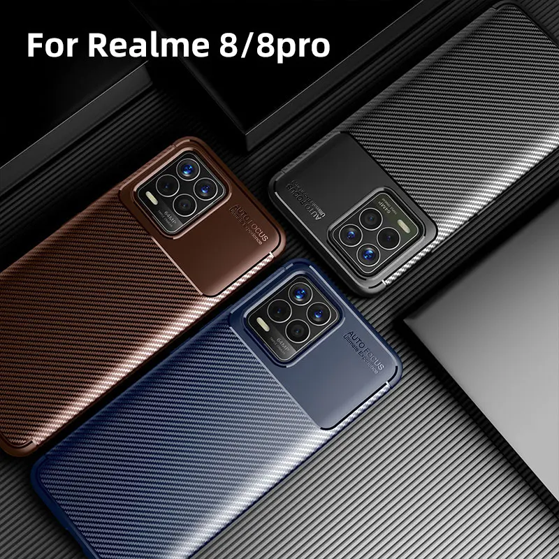 Противоударный мягкий чехол из углеродного волокна для Realme 8 6,4...