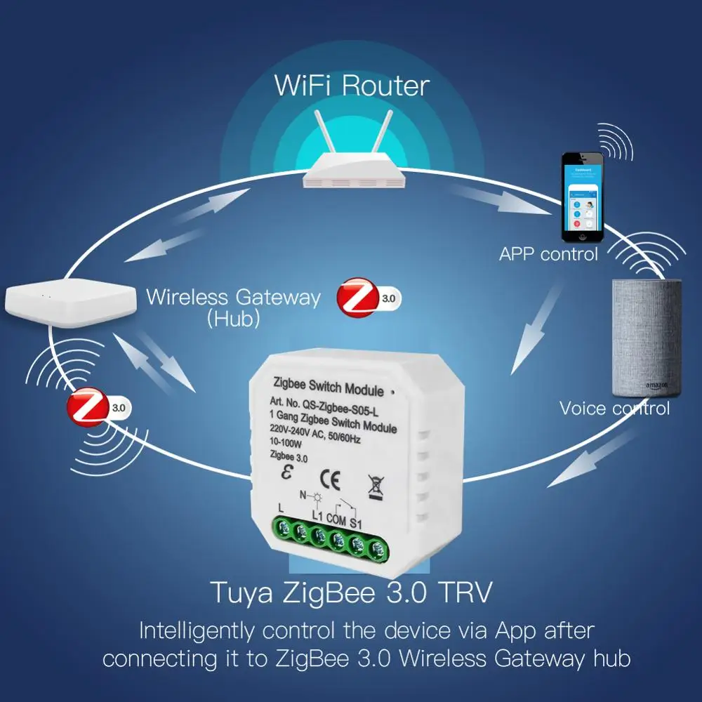 Это небольшой модуль переключателя Zigbee, который устанавливается в коробку переключателей, чтобы традиционный настенный выключатель стал умным переключателем, И может быть беспроводным дистанционным управлением через мобильный телефон «Tuya APP» или приложение «Smart life» и Голосовое управление через Google home и Amazon Alexa.1. Этот умный модуль Tuya ZigBee 3,0 разработан специально с протоколом ZigBee 3,0, совместим с Tuya ZigBee hub, чтобы реализовать всю связь вашего дома, действительно хорошая замена нестабильного Wi-Fi. Протокол ZigBee 3,0 с мини-дизайном костюмы для ЕС/настенный переключатель стандарта Великобритании коробка, И легко спрятать его в вашу скрытую настенная коробка переключателей вашего традиционного переключателя без какого-либо влияния на ваш оригинальный стиль украшения, чтобы сделать его умным, предоставляя вашим устройствам максимальную мощность включения/выключения, умный макияж и конвертировать большинство любых совместимых продуктов в умные; Традиционный переключатель и этот умный модуль могут работать независимо без помех. (Примечание: Этот модуль подходит только для перекидного выключателя, см. Рис. 2 для получения подробной информации.)