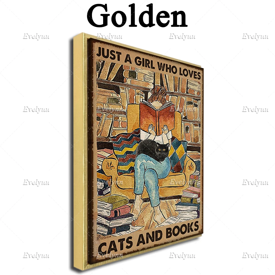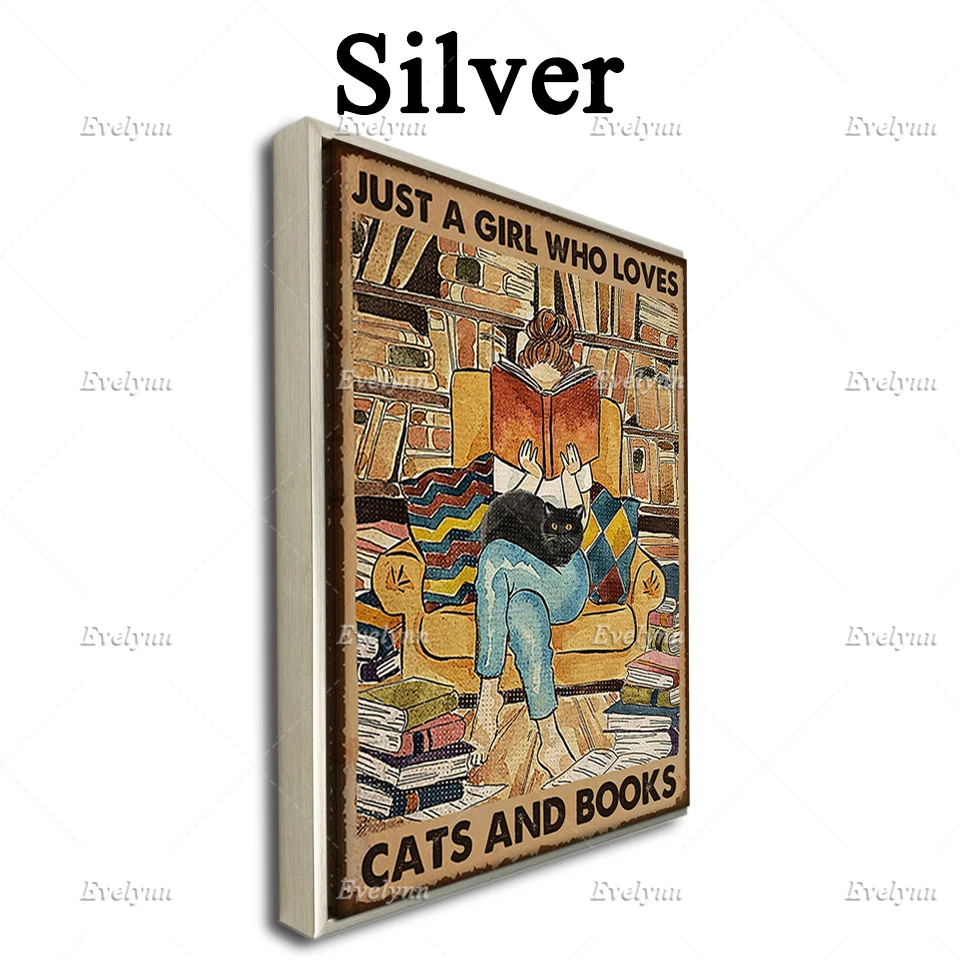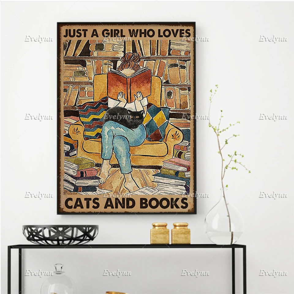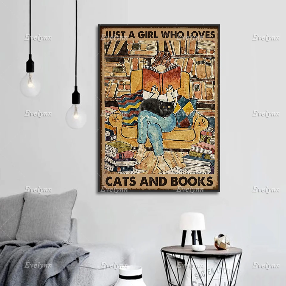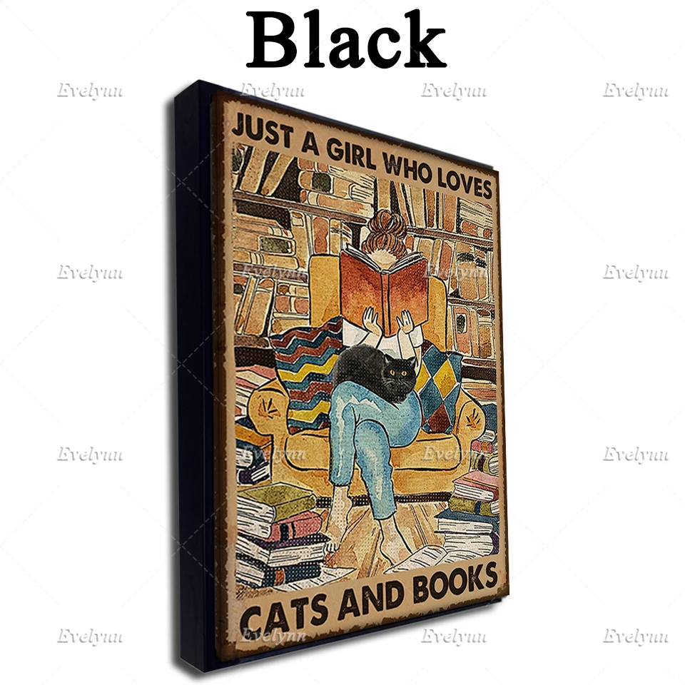 Постер в стиле ретро для влюбленных книги и черных кошек просто девушка, которая любит кошки и книги, настенные художественные принты, домашний декор, холст, плавающая рамка