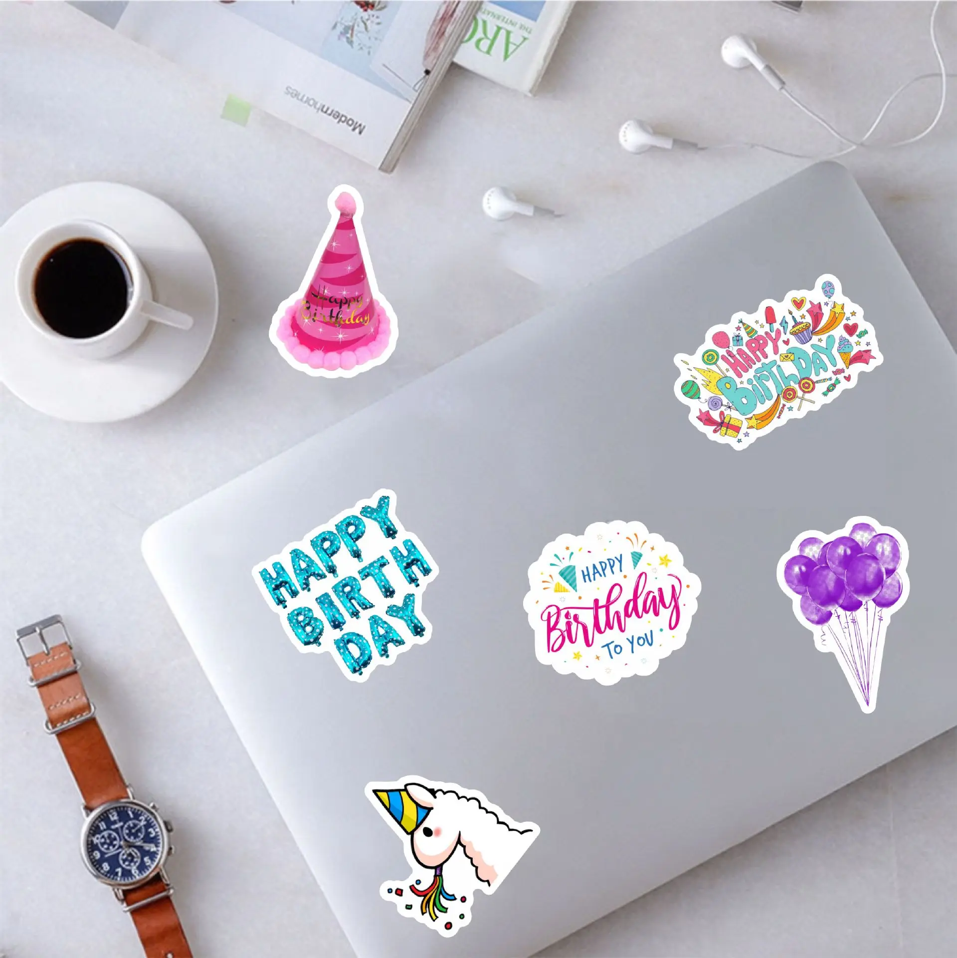 50 шт.упак. Мультяшные стикеры "День рождения" Водонепроницаемый скейтборд мотоцикла гитары чемодан ноутбук велосипед Детские игрушечные этикетки