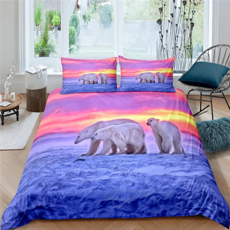 Роскошный комплект постельного белья с 3D-принтом белого медведя, 23 шт., пододеяльник с животным рисунком, наволочка, домашний текстиль, размер Queen и King, EUUSAU