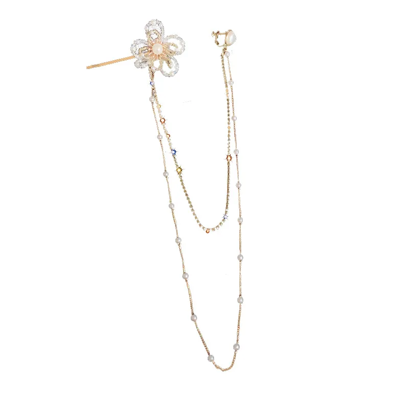 Серьги-клипсы для волос, с бриллиантами и жемчугом