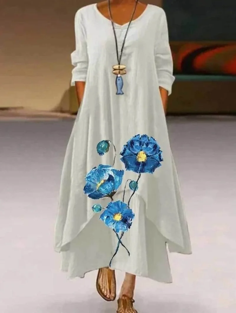Платье женское длинное с цветочным принтом, винтажное Элегантное повседневное праздничное, из двух размера плюс, 4XL, белое, 2021