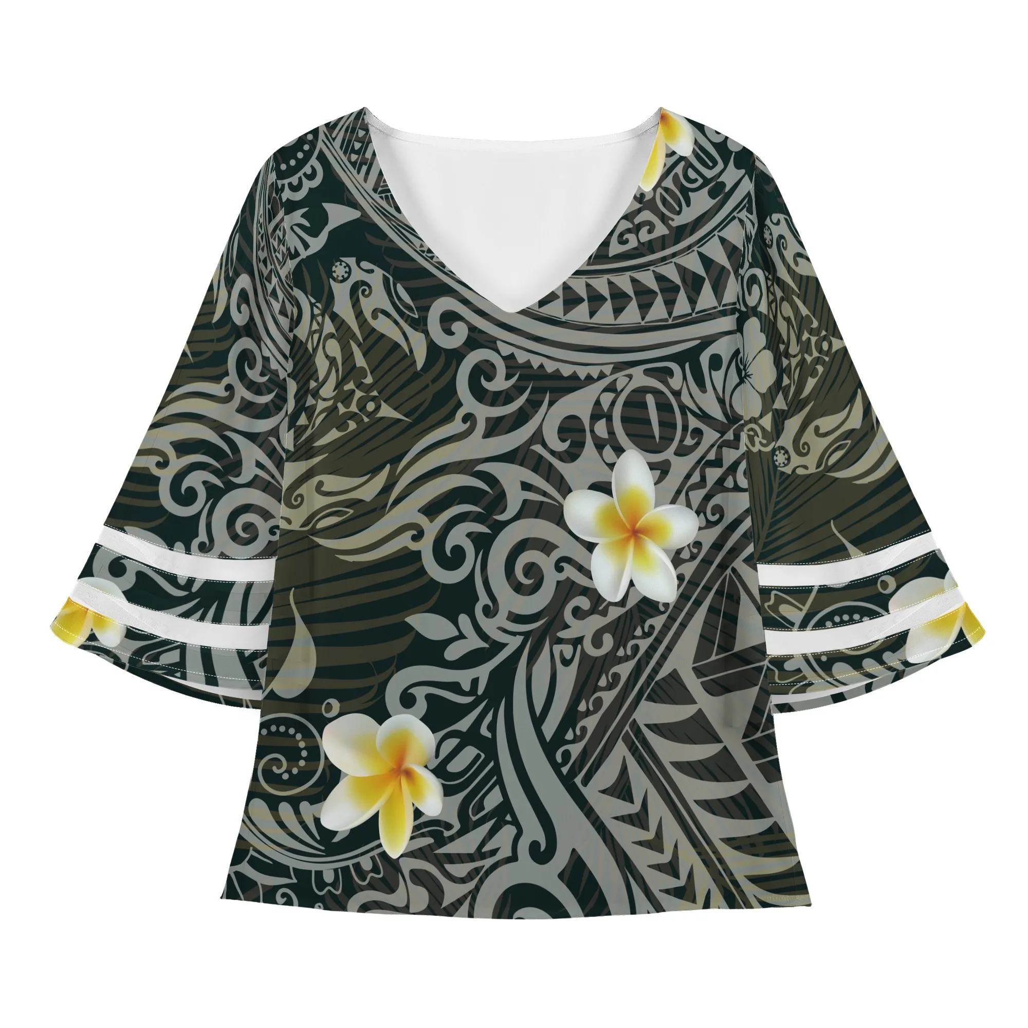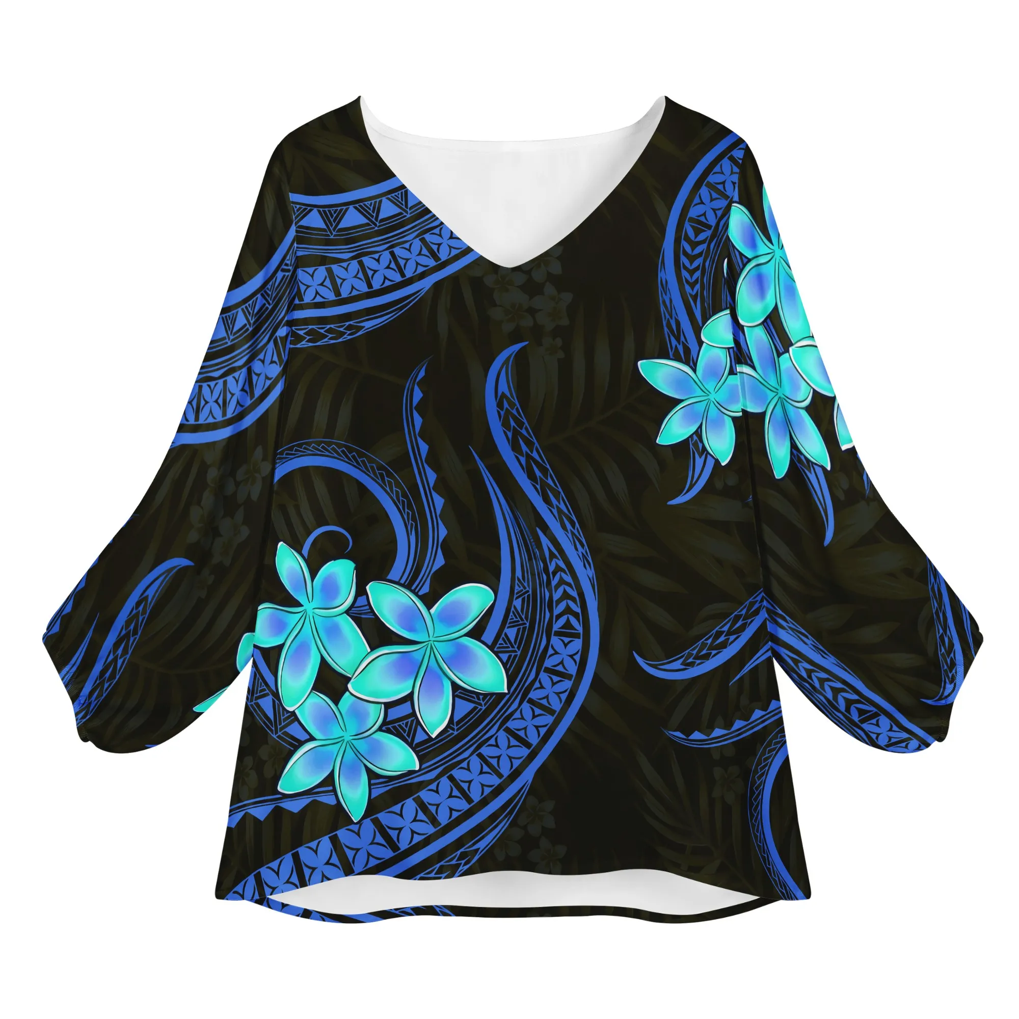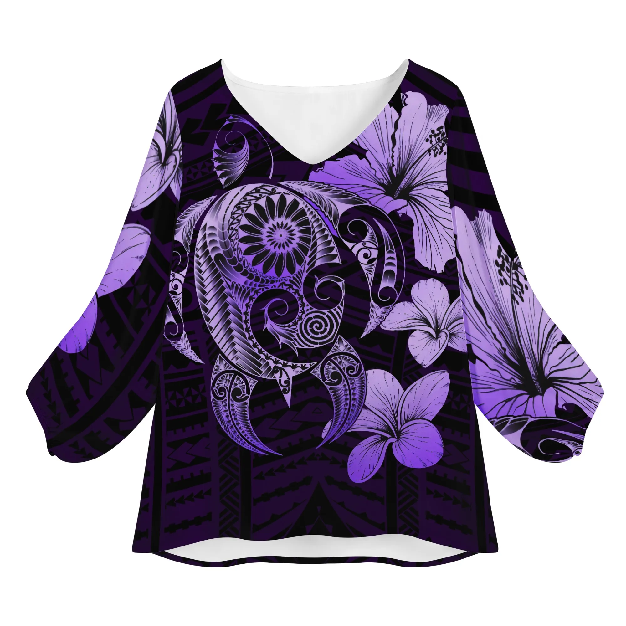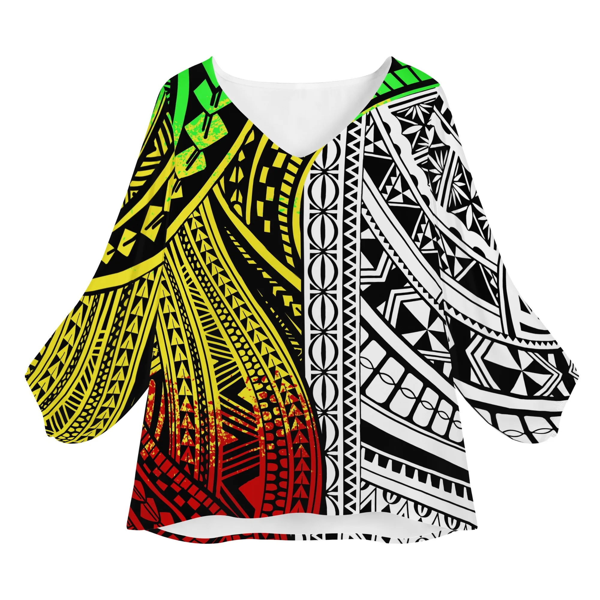 Женская блузка с принтом, длинным рукавом и V-образным вырезом