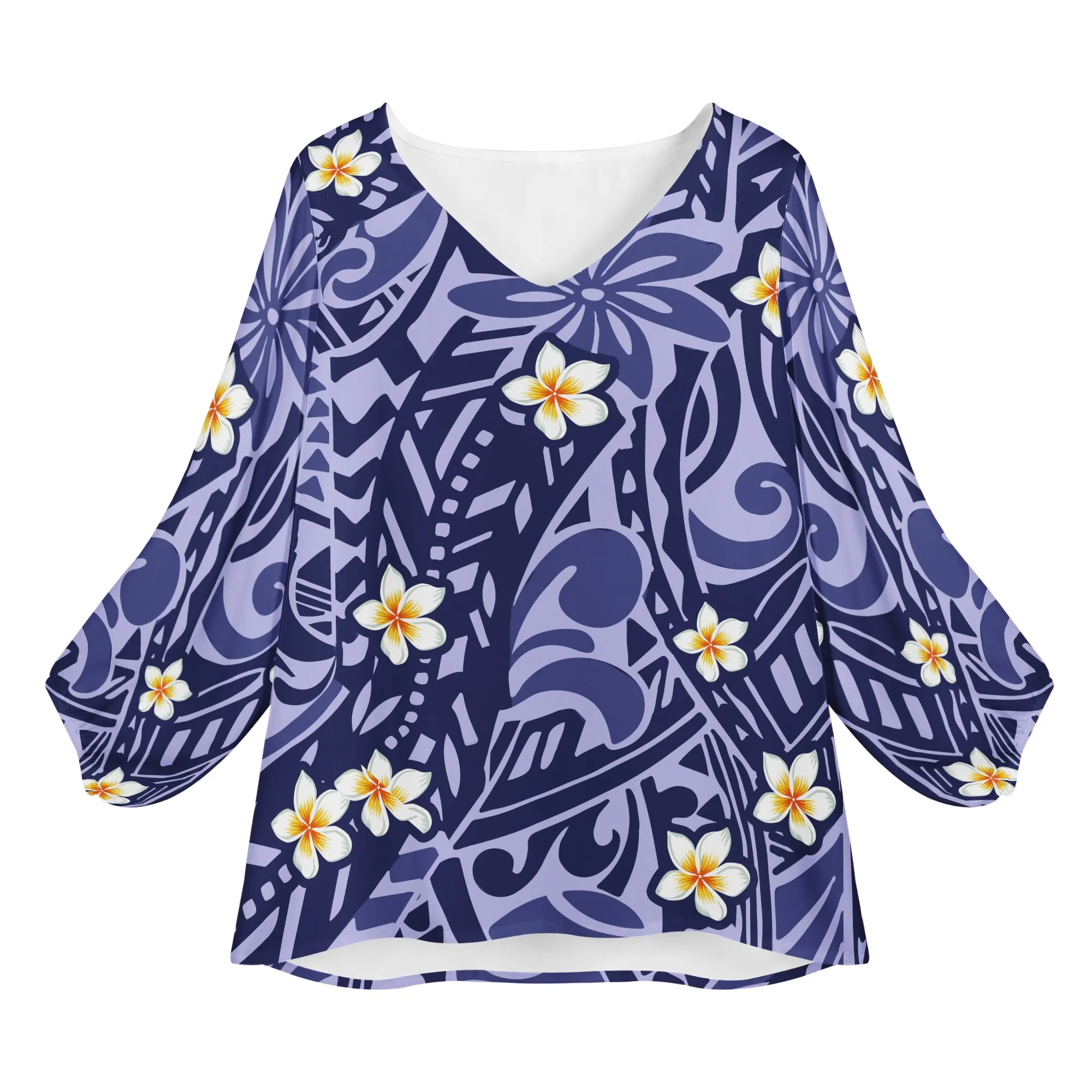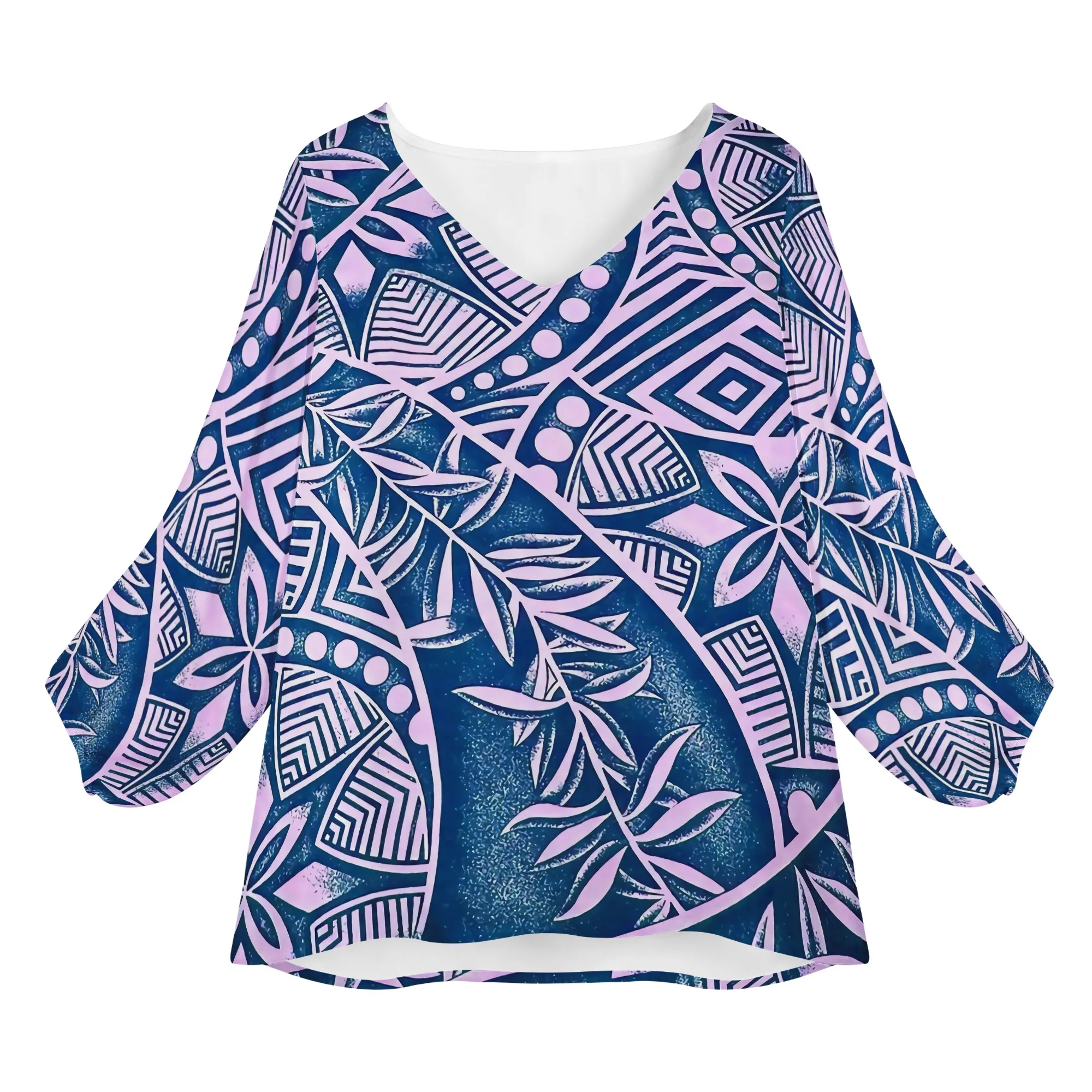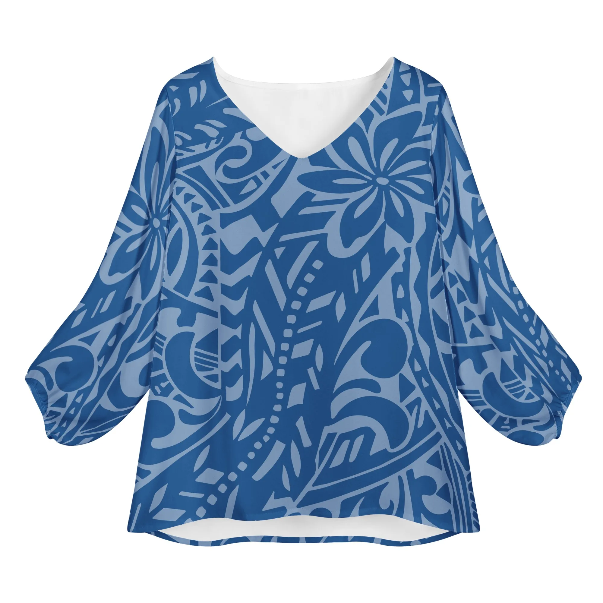 Рубашка женская с длинным рукавом-фонариком и глубоким V-образным вырезом