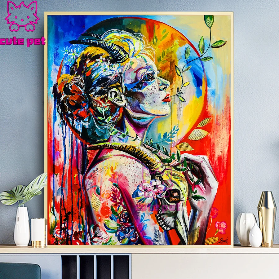 5d сделай сам, алмазная живопись, абстрактный граффити, женщина, по...