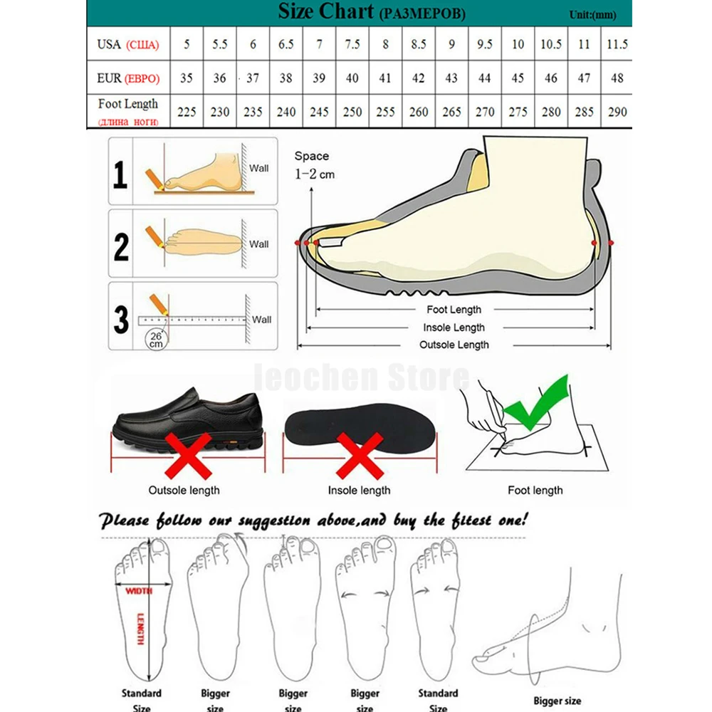 * Поскольку Измерение вручную может иметь погрешность в 1-3 см Если у вас широкая или Толстая стопа, мы предлагаем вам выбрать обувь на один размер больше.