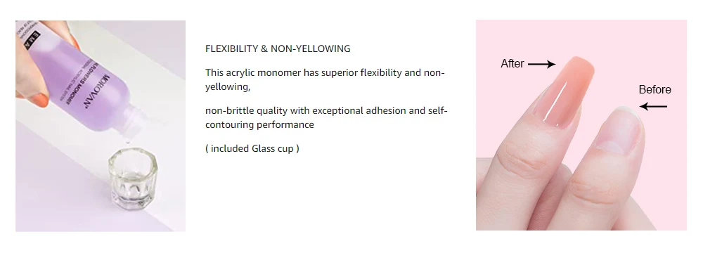 Акриловая жидкость для ногтей Monomer относится к быстросохнущей акриловой жидкости EMA (сушка занимает около 3-5 минут)Небольшое количество запаха, рекомендуется использовать жидкость мономера в проветриваемом месте.Акриловый жидкий мономер в стеклянные чашки, используйте акриловую Кисть для ногтей, чтобы опустить немного акриловой пудры в акриловую жидкость для ногтей,Затем нанесите акриловую пудру на ногти, красивый матовый финиш, позволяет сделать более красочный дизайн акриловой пудры искусства