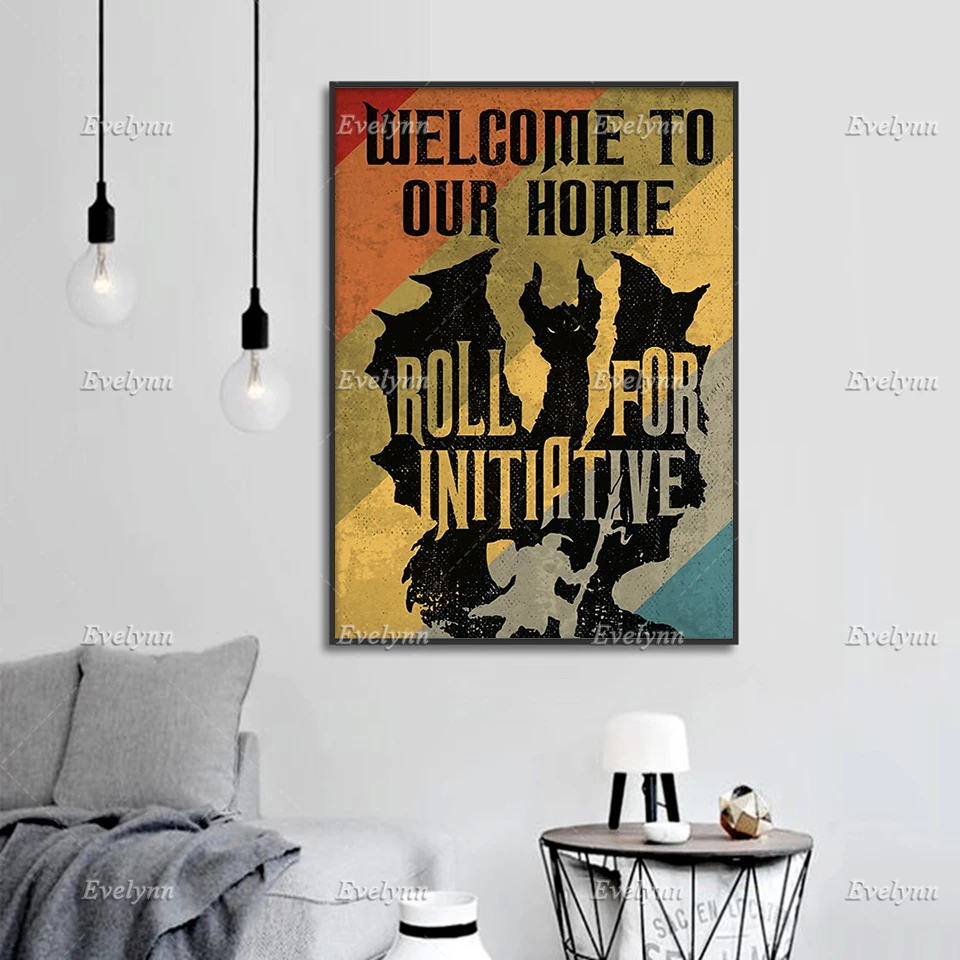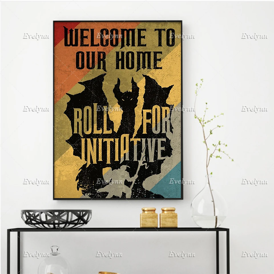 Добро пожаловать в наш домашний рулон инициативный Ретро плакат подземелье Дракон игральные кости настенные художественные принты домашний декор холст плавающая рамка