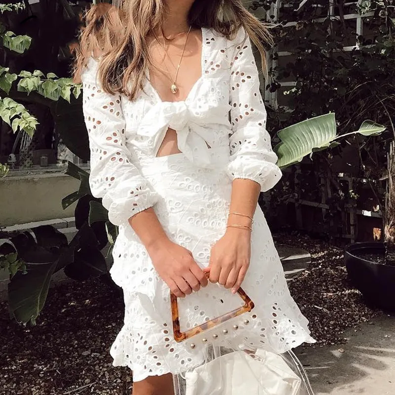 Нормальный белый чеснокчисто белый открытыми пальцами с глубоким вырезом, сеточной подкладкой Повседневное платье повязка на грудь с оборками элегантные вечерние сексуальное платье для Для женщин
