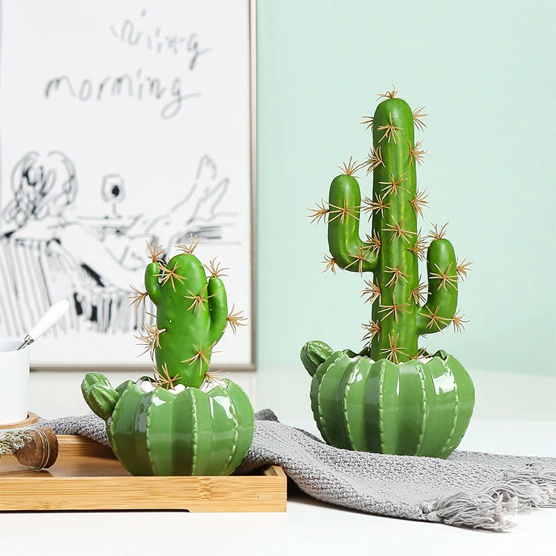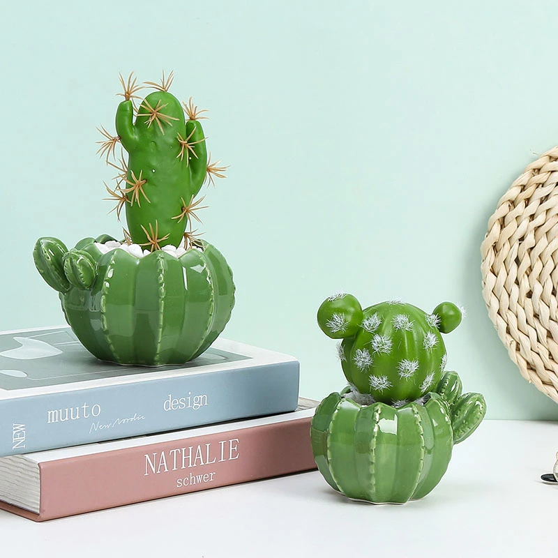Керамическая ваза для цветов С КАКТУСОМ, креативная скульптура растений, горшок бонсай, садовый держатель для суккулентов, украшение для домашней гостиной