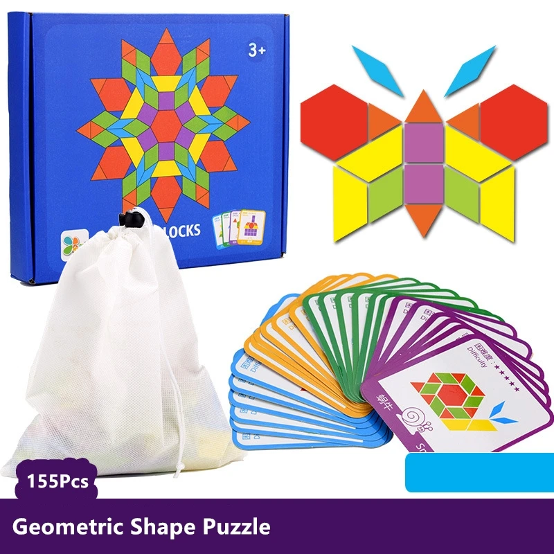 Набор деревянных узорчатых блоков Treeyear, головоломка геометрической формы для детского сада, Классическая образовательная игрушка Монтессори Танграм, 155 шт.
