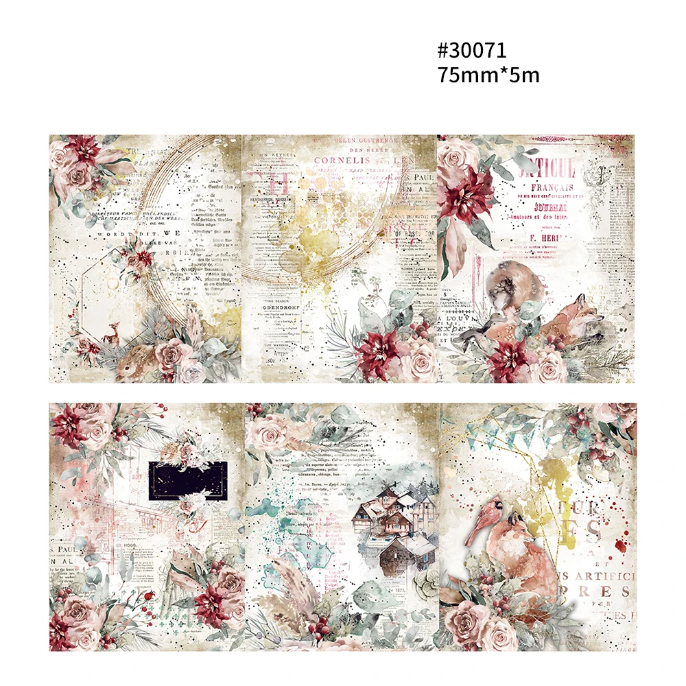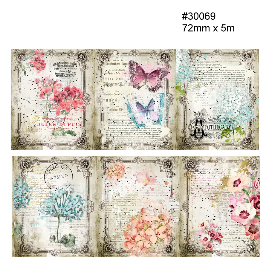 Винтажный декоративный скотч, 15 видов, цветочный коллаж, скрапбукинг, дневник, цветок, бабочка