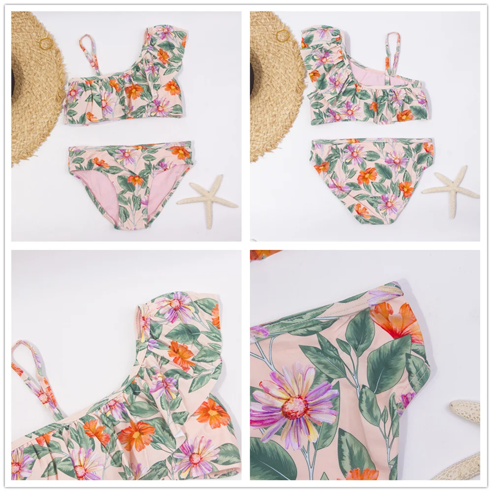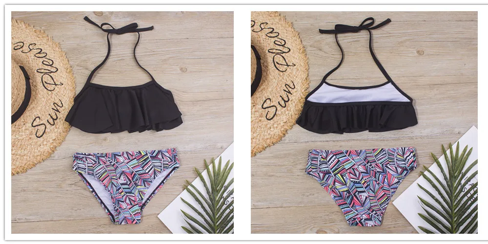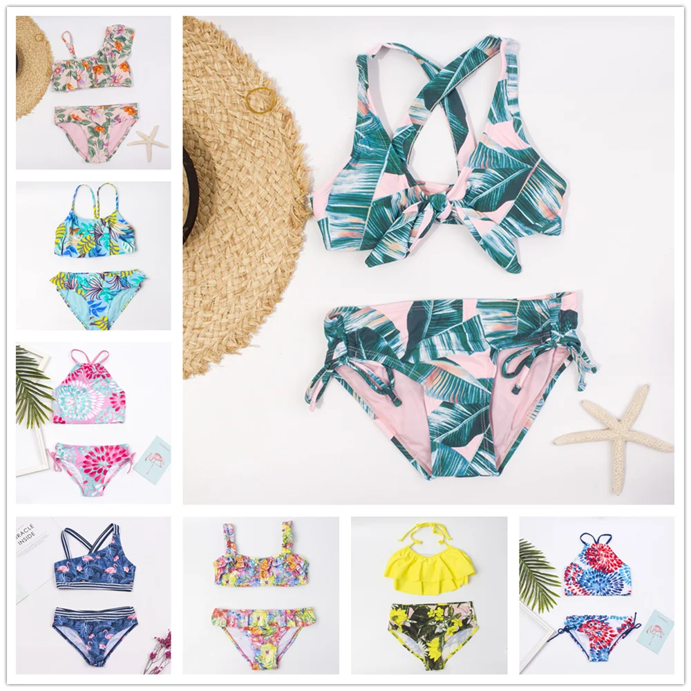 От 3 до 14 лет Купальник для девочек с принтом листьев, бандажный купальный костюм 2021, Детский комплект бикини, разные стили, купальный костюм A277