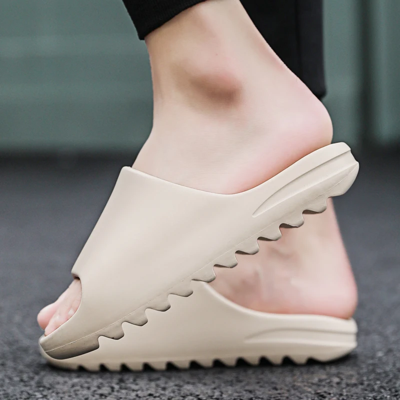 Шлепанцы Yeez мужские летние, дышащие пляжные сандалии, легкие шлепанцы с открытым носком, цвет белый, фототкань 34-46