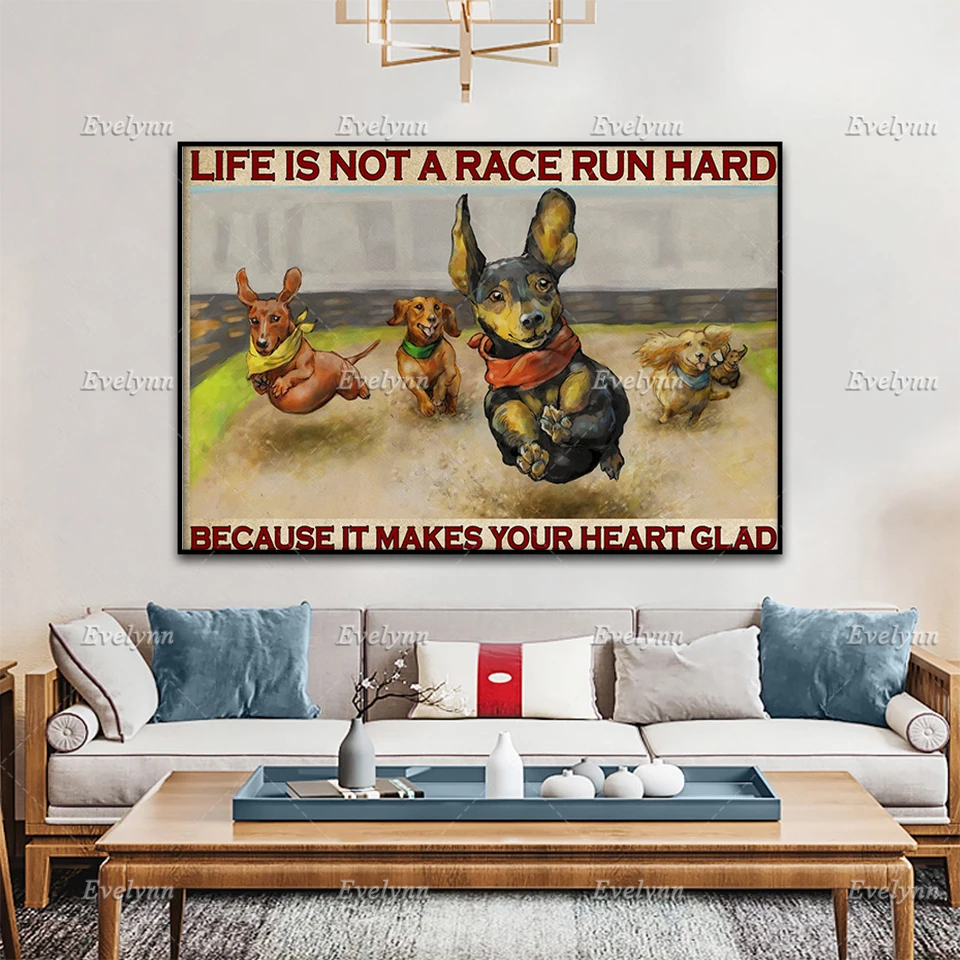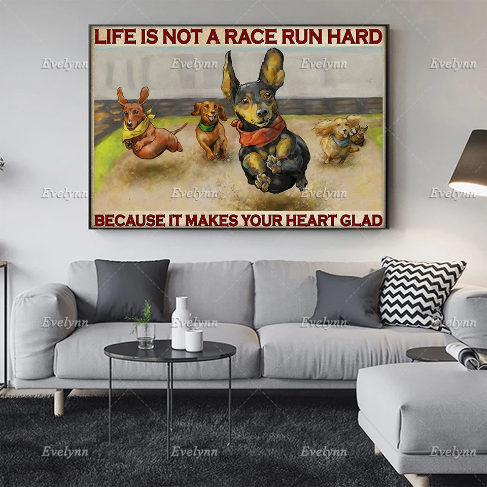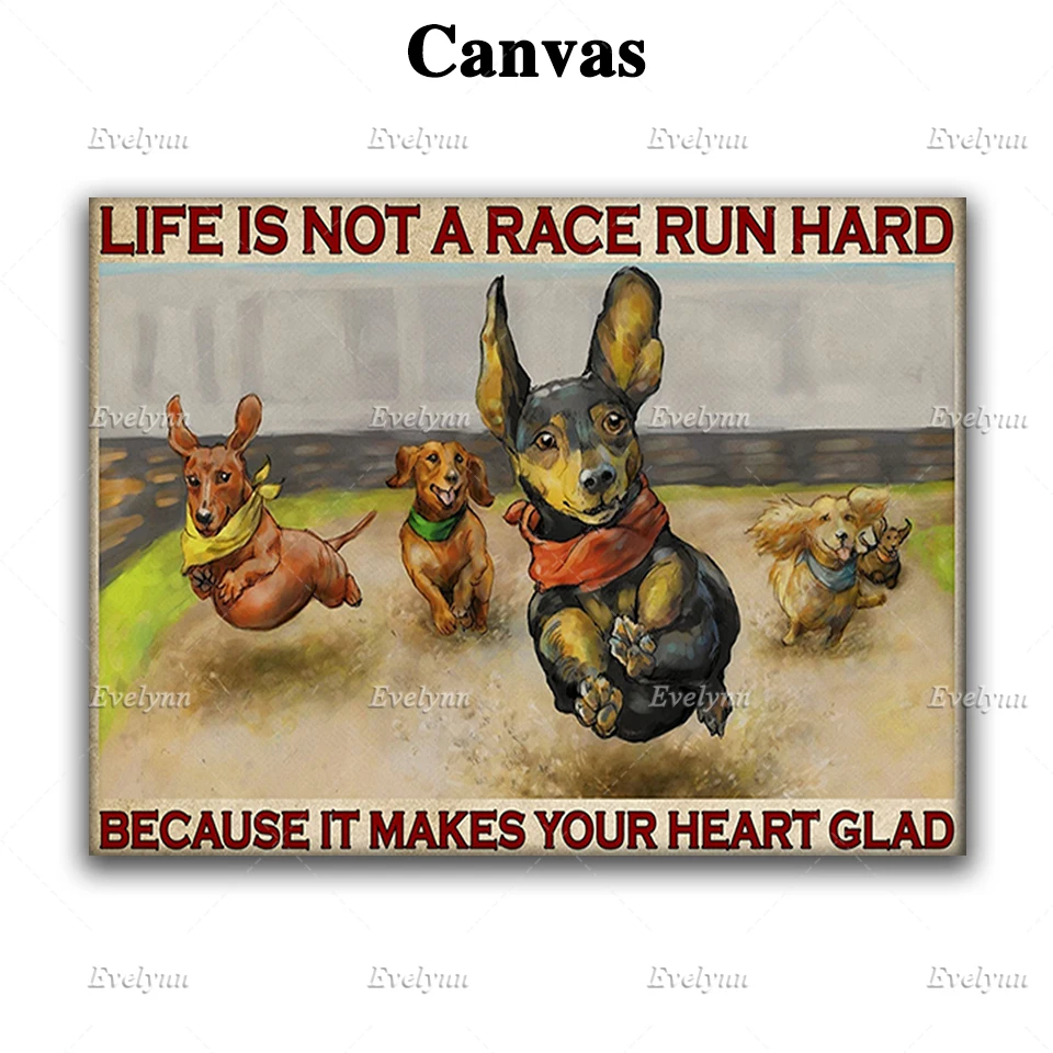 Плакат для любителей таксы Life IS Not A Race Run Hard, потому что он делает ваши настенные художественные принты, домашний декор, холст, плавающая рамка