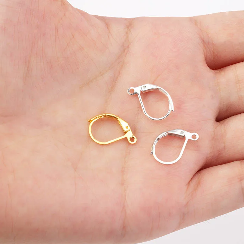 50 шт., 15 х10 мм, серьги «сделай сам», серебро, золото, серьги с французским замком, рычаг, крючки, настройки проволоки, базовые обручи для изготовления ювелирных изделий, компоненты