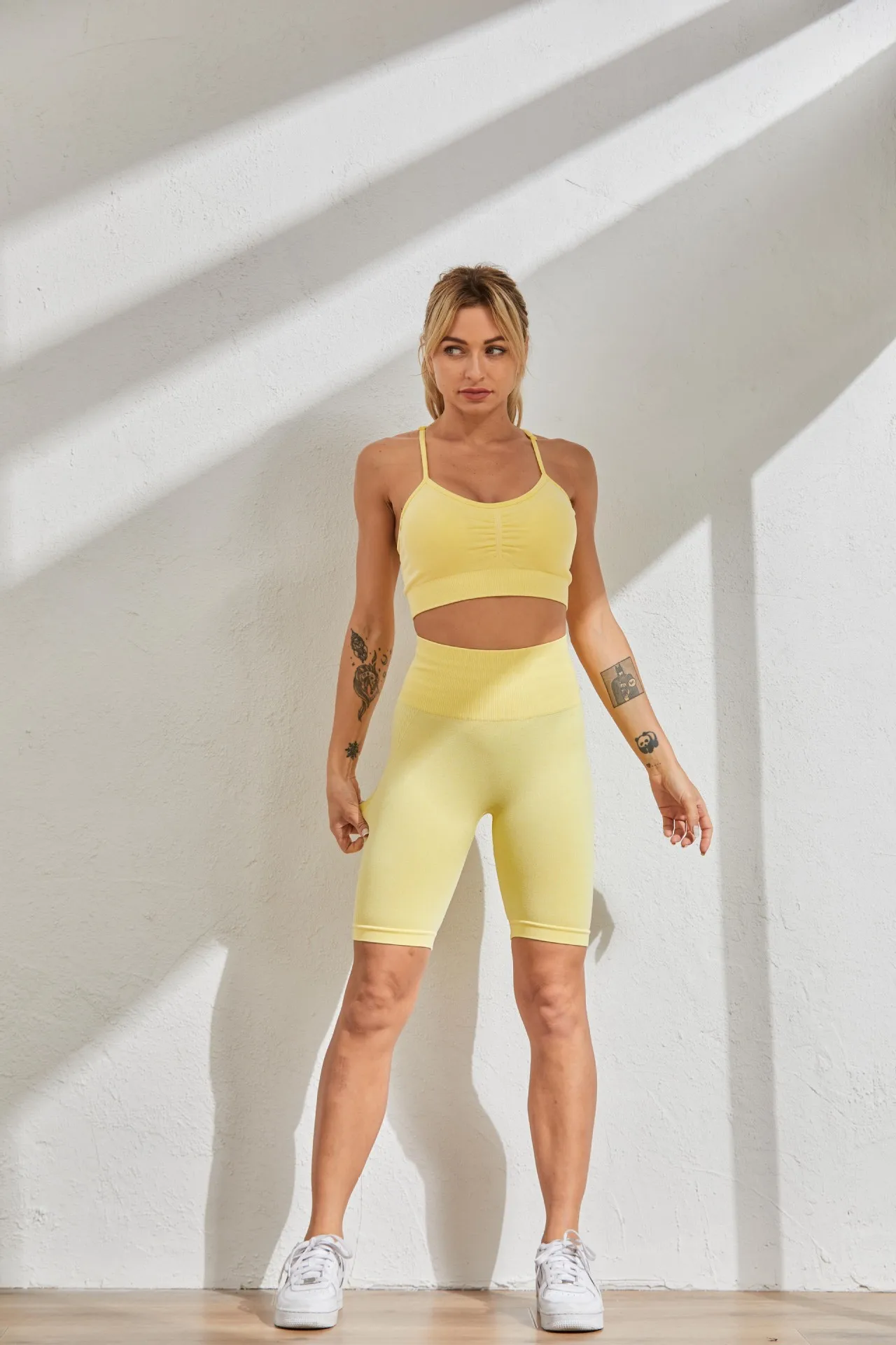 Шорты женские спортивные бесшовные с эффектом пуш-ап и высокой талией