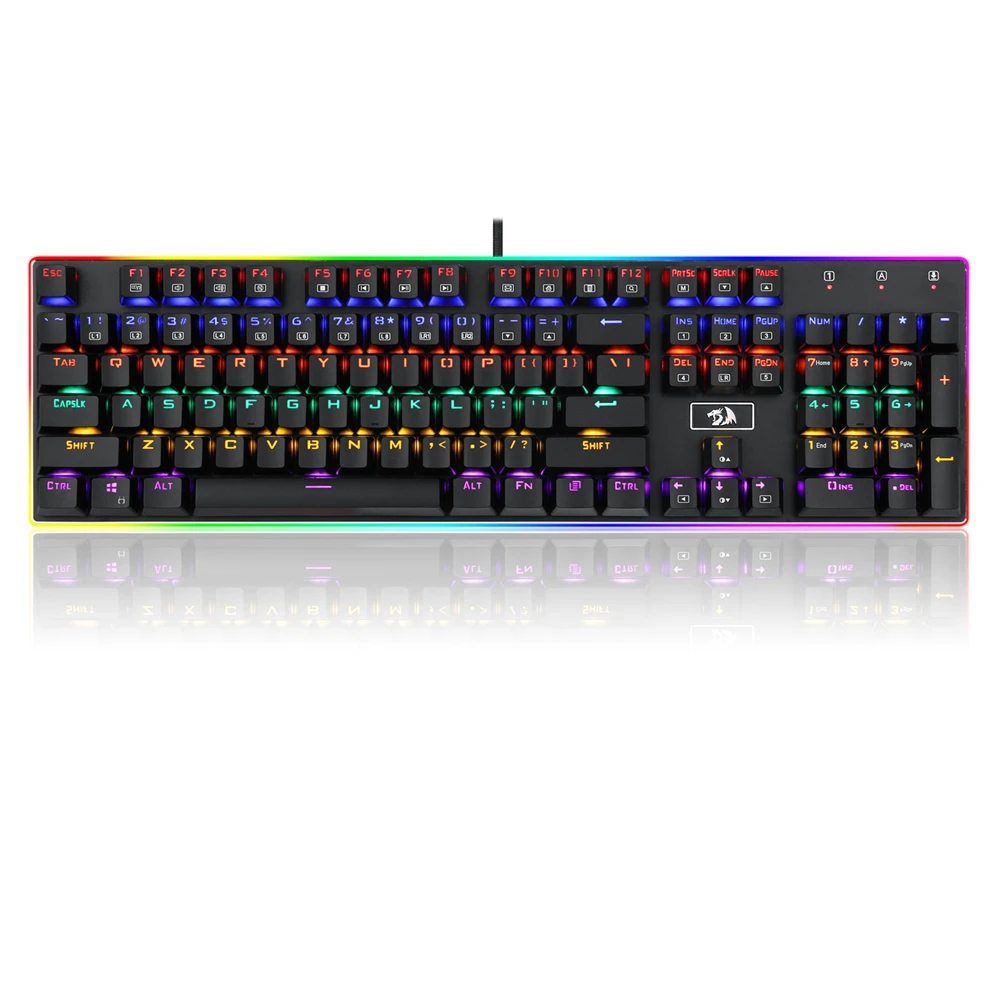 Универсальная игровая клавиатура с защитой от привидения для ПК. Все 104 механических ключа являются беспроблемными (N-Key Rollover) для максимальной производительности игр. Наслаждайтесь уникальным и надежным опытом с функцией Win Lock и легким доступом к медиа и клавишам быстрого доступа (F1 - F12), проводная клавиатура имеет 1,8 m плетеный шнур с позолоченными высокоскоростной коррозии Бесплатная входной порт USB.