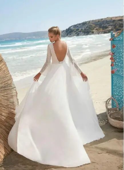 Кружевное свадебное платье с длинным рукавом и v-образным вырезом в пол, богемное свадебное платье из шифона, простое пляжное винтажное платье Vestido De Noiva Mariage