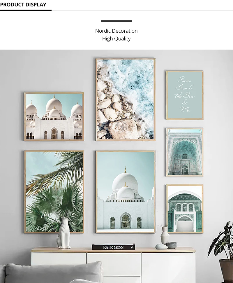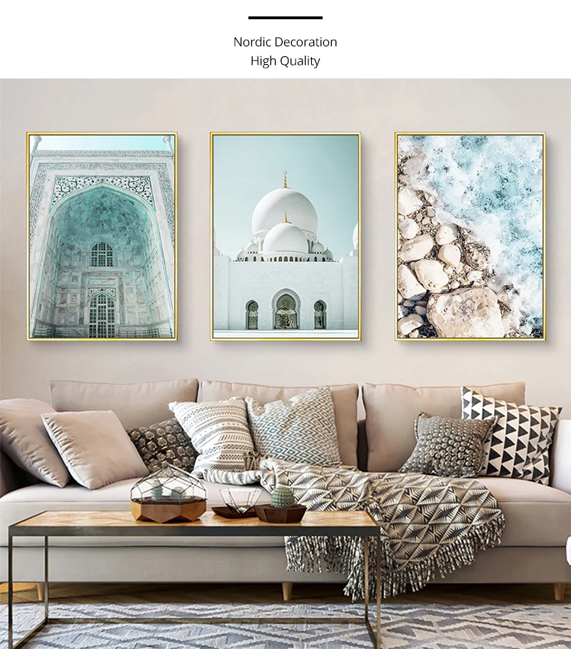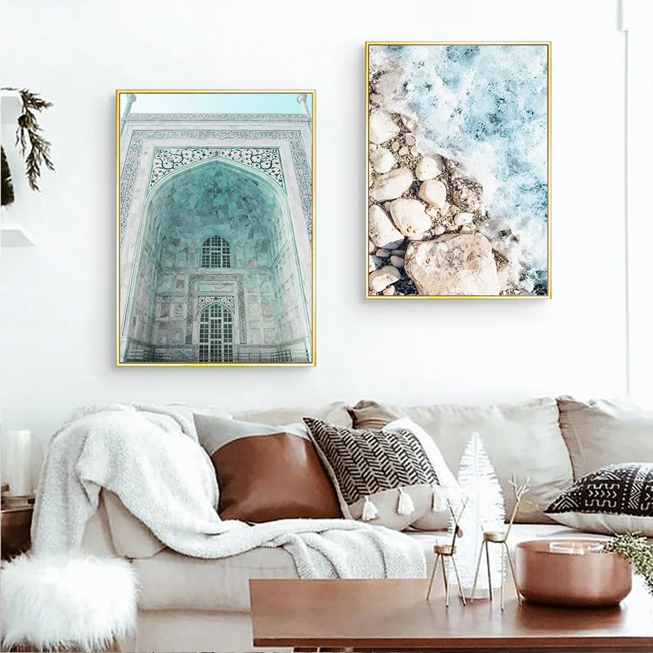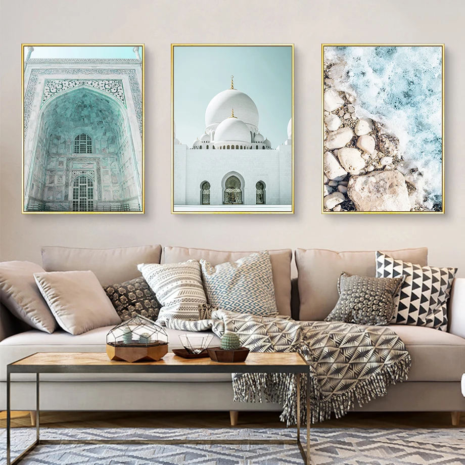 Исламский бежевый плакат, пейзаж, холст, принт, дворец, город, ност...