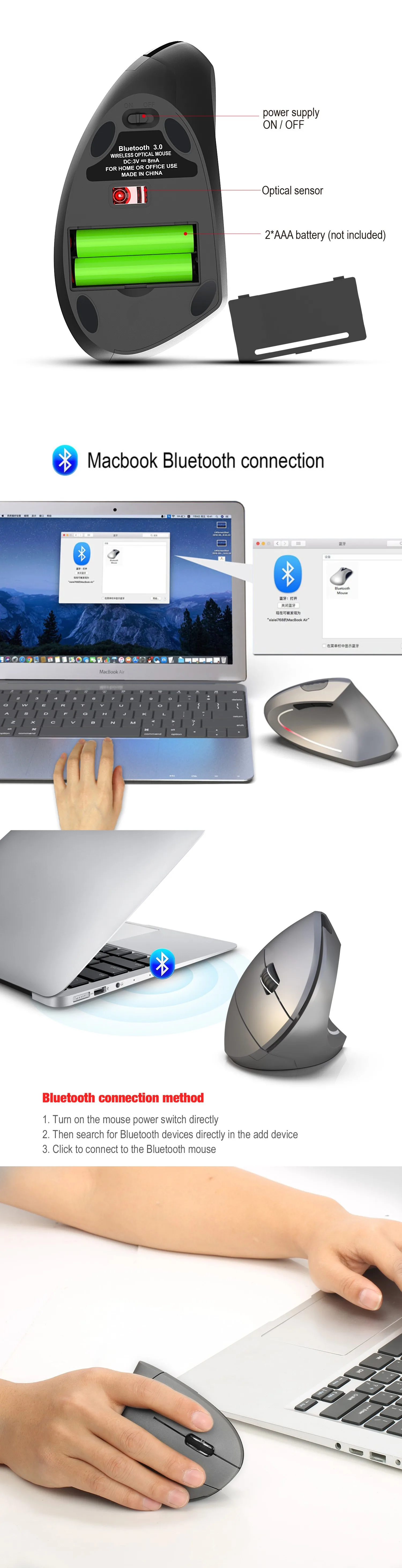 Беспроводная оптическая мышь Bluetooth, эргономичная Вертикальная мышь с поддержкой DPI, Регулируемая игровая мышь для геймеров