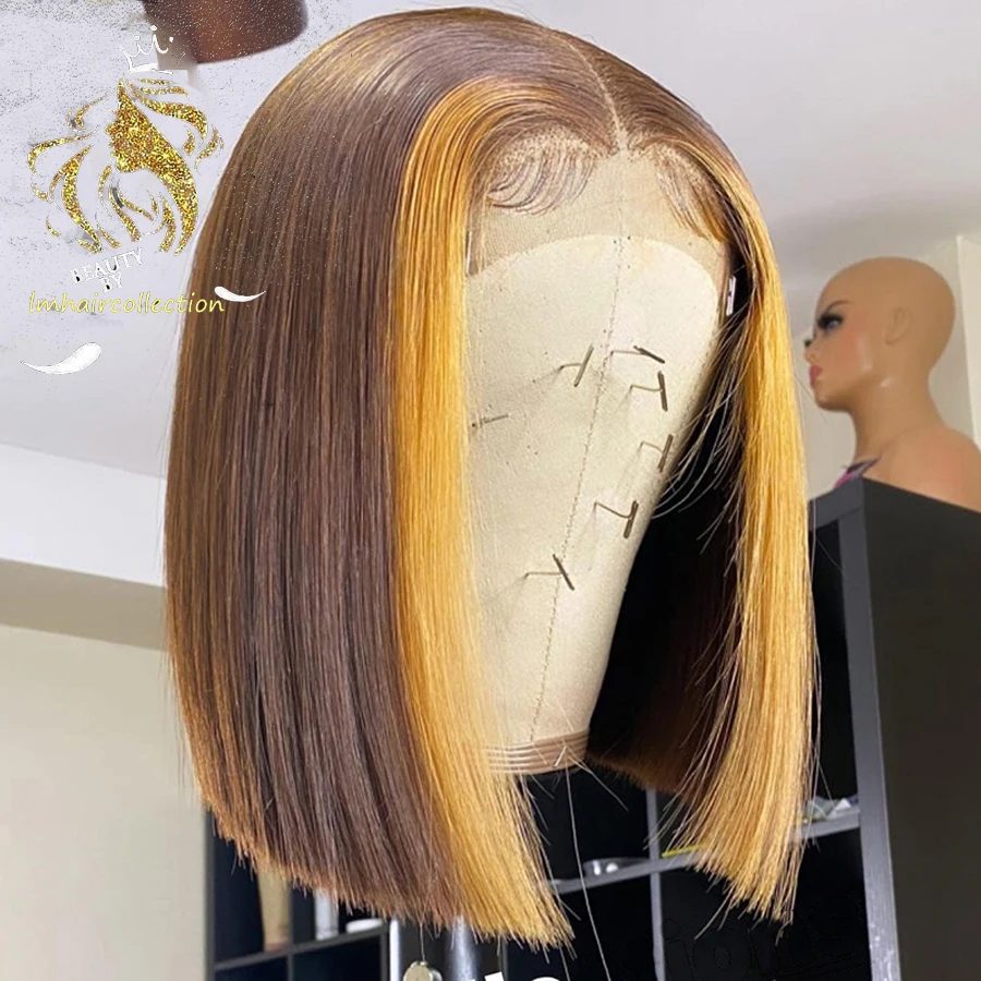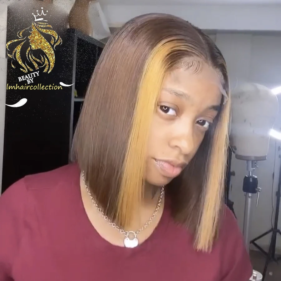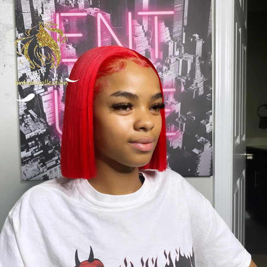 Темно-красный Hightlight человеческие волосы парики с детскими волосами 13x6x1 короткий Боб Синтетические волосы на кружеве парики для Для женщин бразильский Волосы Remy бесклеевой парик