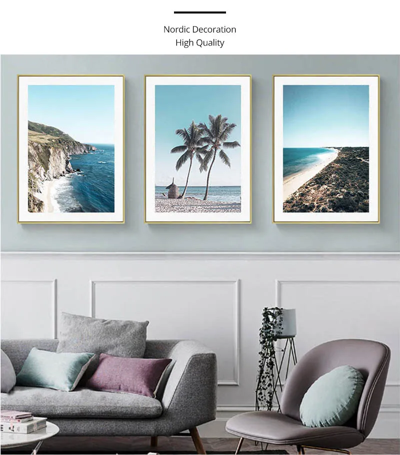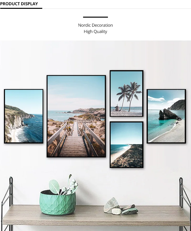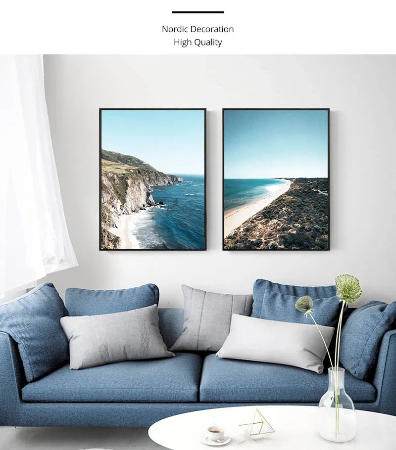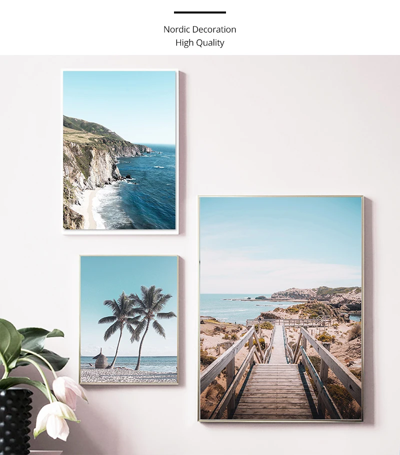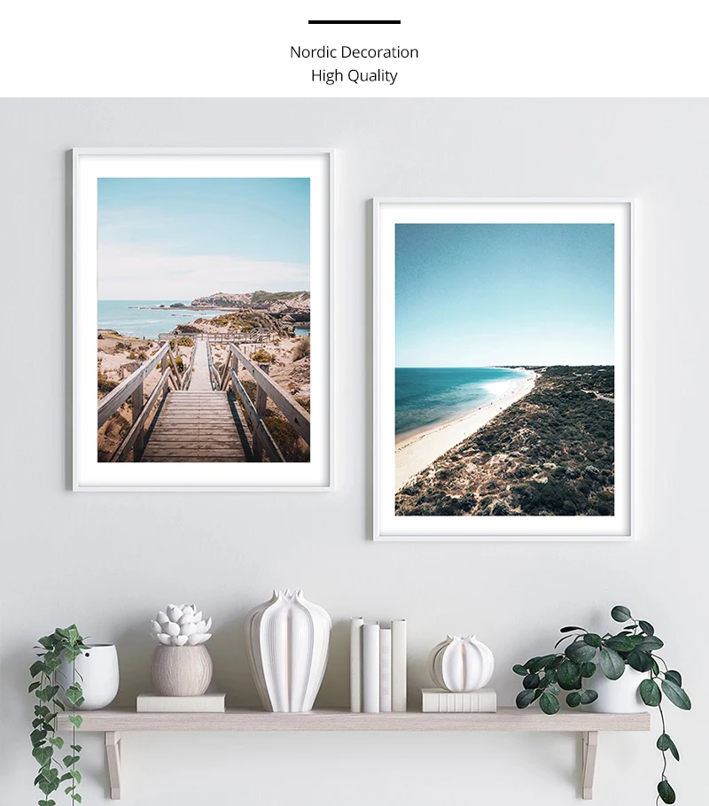 Постер на холсте с изображением океана, моря, пляжа, моста, Скандинавская природа, морской пейзаж, настенная живопись, Скандинавская декоративная картина для гостиной