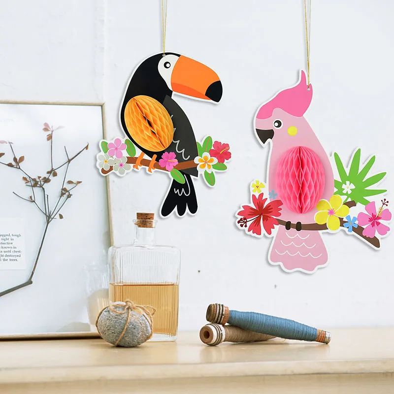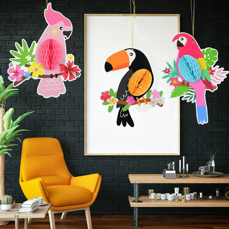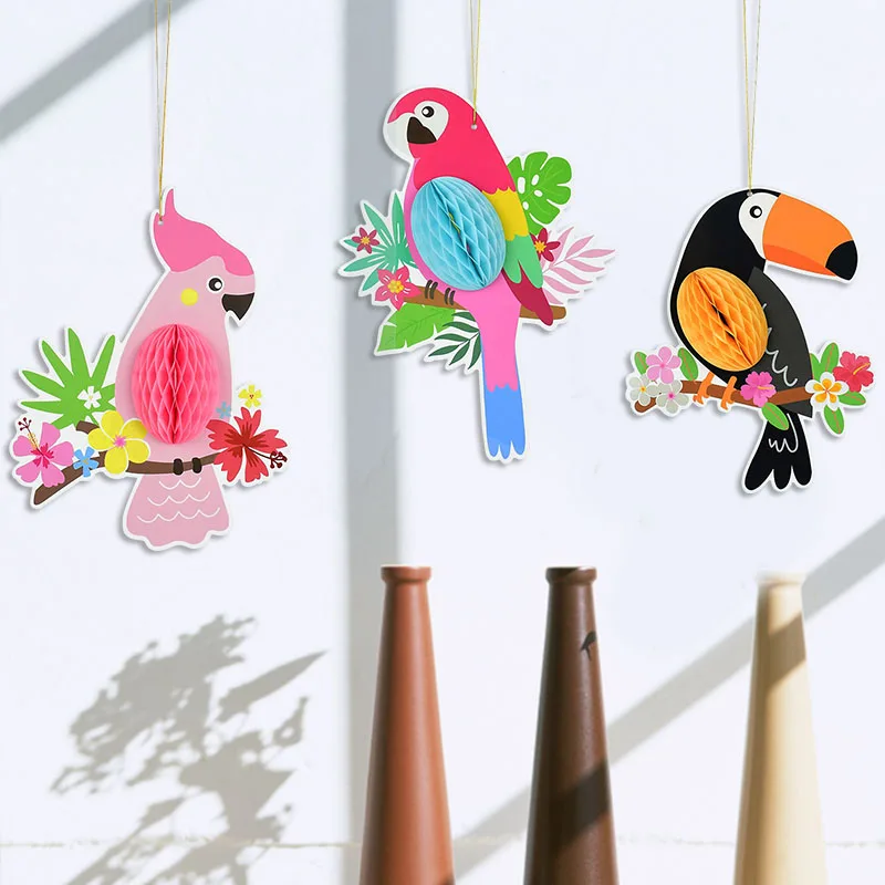 3 шт. висит Бумага Вафельная Ткань попугаев для Гавайский пляжный плавательный бассейн Луо тропический летнее платье для девочек, детская одежда, принадлежности для украшения свадебной вечеринки