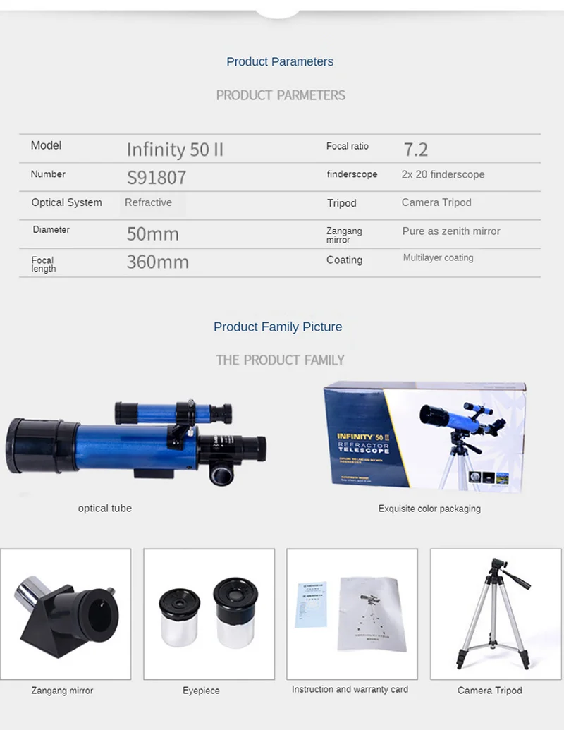 Телескоп астрономический, HD, с многослойным покрытием, для наблюдения за космосом, для начинающих, 50360