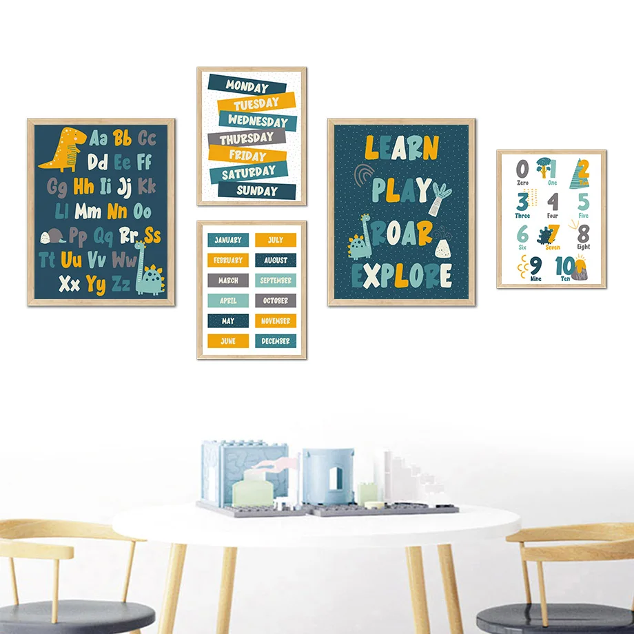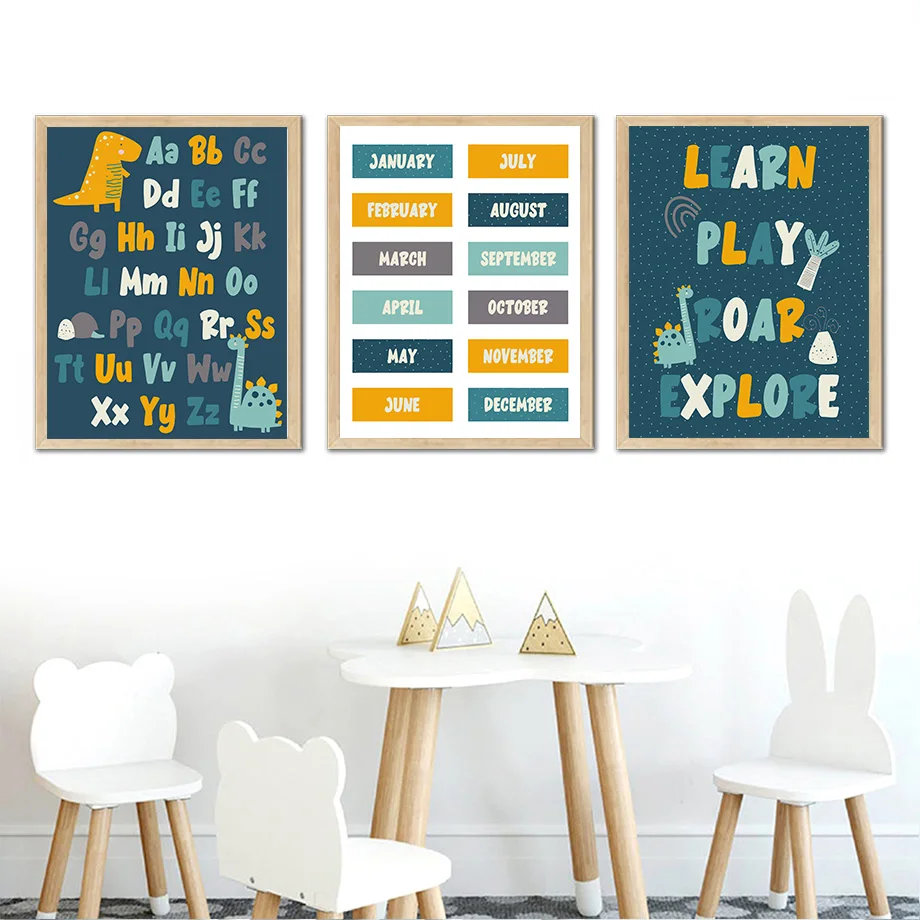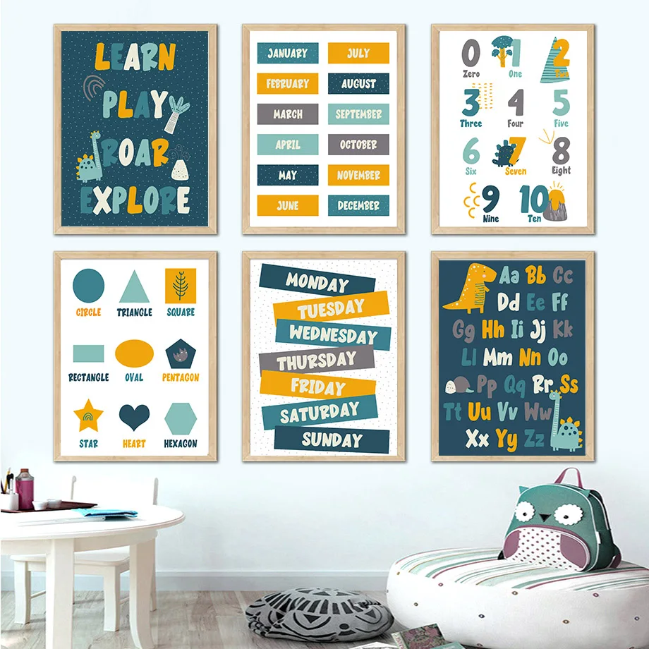 Мультяшный динозавр рыба Лев Алфавит обучение настенная Картина на ...