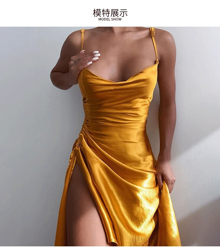 2021 модное Трендовое женское платье на бретельках с атласным разре...