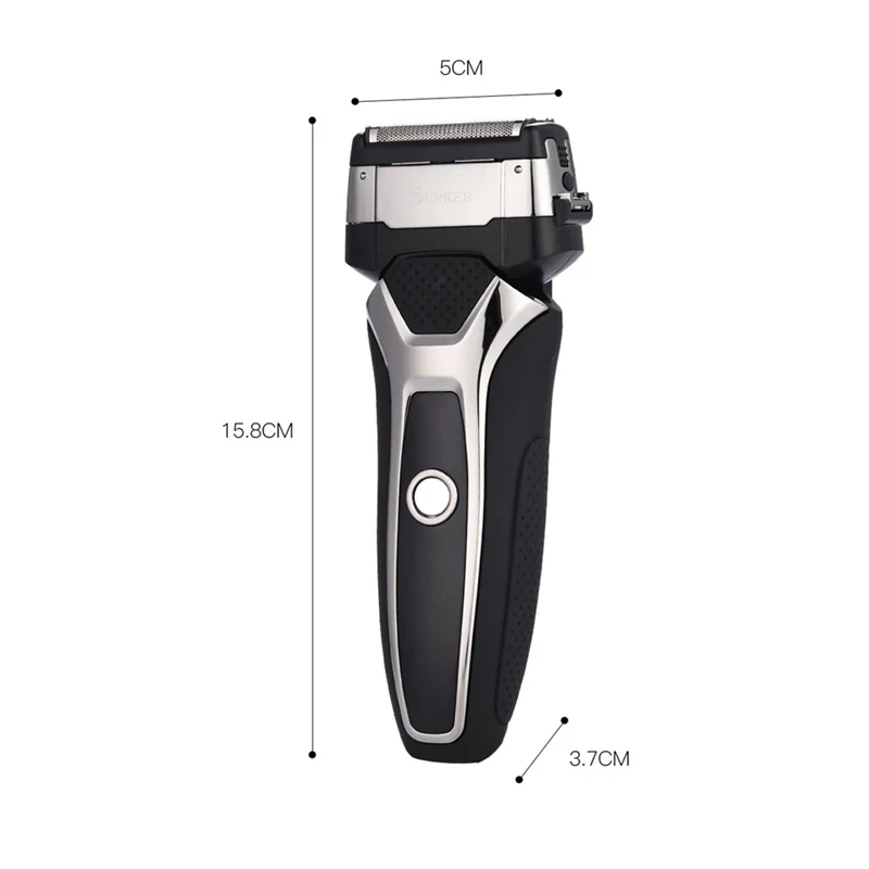Функция светодиодный ным дисплеем, показывающим емкость аккумулятора, турбоиндикатором, символом travel guard, символом tap и символом заряда аккумулятора.Сухое/влажное двойное использование. Поскольку корпус станка является водонепроницаемым и его можно полностью погрузить в воду, вы можете удобно брить сухой в любое время или в душе, удобно чистить.Встроенный литий-ионный перезаряжаемый аккумулятор емкостью 800 мАч, его можно заряжать с помощью USB-адаптера. После полной зарядки 1,5 часа его можно использовать непрерывно в течение 90-100 минут.С 3 лезвиями (2 бритвенной фольгой и интегрированным триммером для длинных волос) и 3D плавающей системой бритья, интеллектуальное и быстрое бритье.Уникальная функция travel guard, которая может предотвратить случайное включение бритвы, защитить бритву.К тому же есть раздвижной триммер бакенбард, какая функциональная бритва.