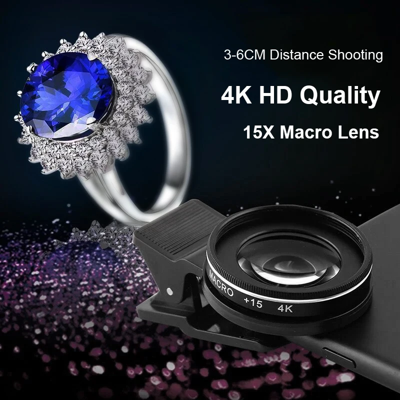 Макрообъектив 37 мм 15X 4K HD, для смартфона