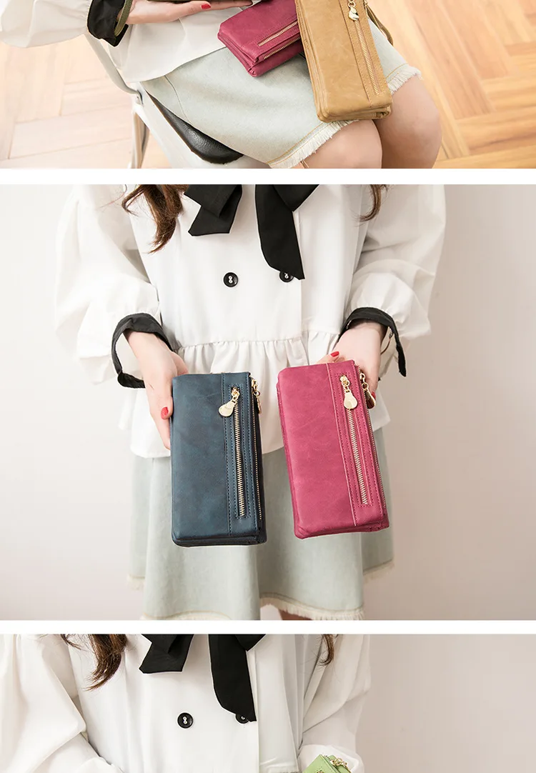 Женский кошелек Новый Стиль Длинные Многофункциональный клатч Ретро кошелек для мелочи из искусственной кожи сумка для хранения на молнии простая женская сумка-кисет