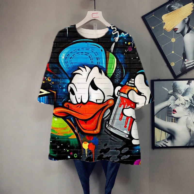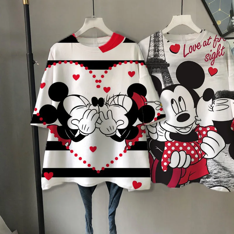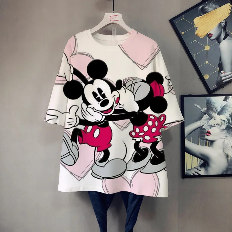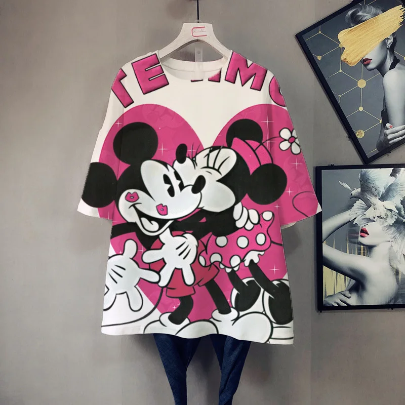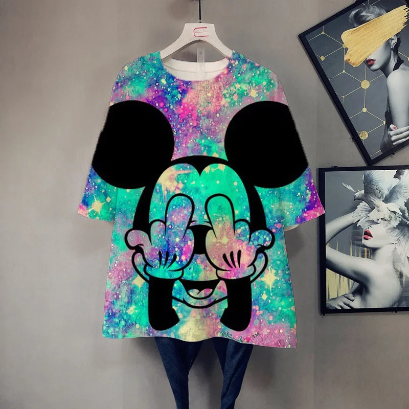 Топ с 3D Футболка Микки диснеевским мультяшным 3D Ullzang Женский, футболка оверсайз в стиле хип-хоп, уличная одежда в стиле Харадзюку, рубашка с коротким рукавом, на лето