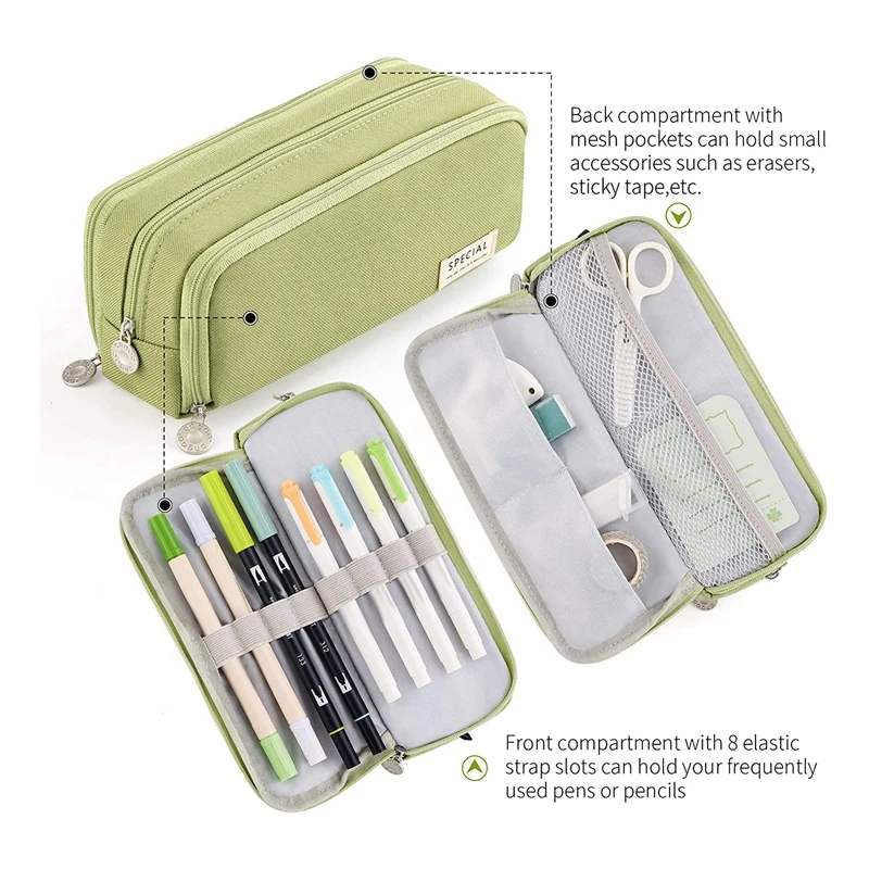 Высокое качество: использование прочной металлической молнии облегчает захват и контроль. Легкий и прочный материал обеспечивает отличную защиту от пыли, разрывов, царапин и истирания чехол-карандаш.Большой емкости для хранения: размер 8,46x2,76x3,54 дюйм (ов). В просторном помещении можно вместить до 50 ручек или карандашей, заметок и других небольших инструментов и канцелярских принадлежностей. Очень подходит для хранения личных вещей и канцелярских товаров.Удобный дизайн: вместительное пространство, 3 отделения, различные предметы могут храниться отдельно. Простой в использовании, легко найти предметыМногофункциональность: Эта сумка для карандашей не только используется для карандашей, но также может удовлетворить фактические потребности разных людей, таких как косметические сумки, ремесленные сумки, дорожные или косметические сумки, 3C продукты или аксессуары сумки.Размер: 21,5х7х9 смМатериал: ткань ОксфордЦвет: зеленый/розовый/черный