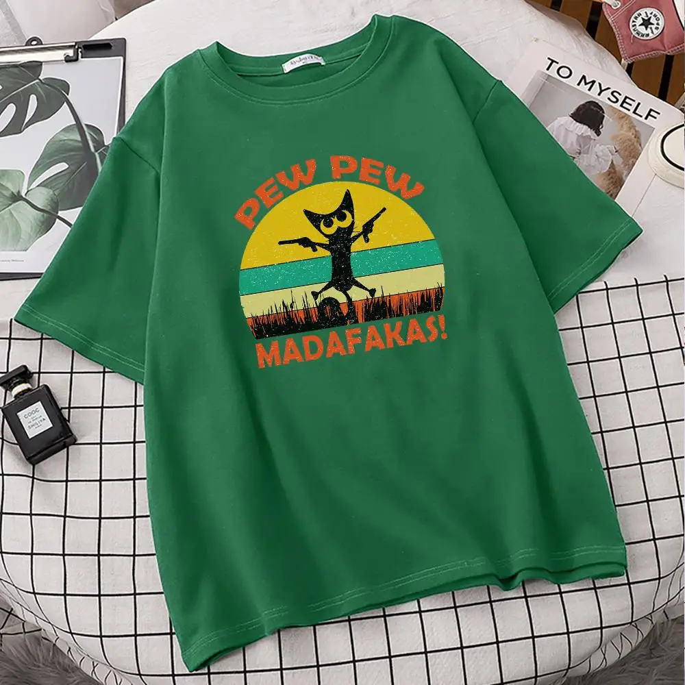 Женские футболки с коротким рукавом и надписью Cat Pew Madafakas, м...