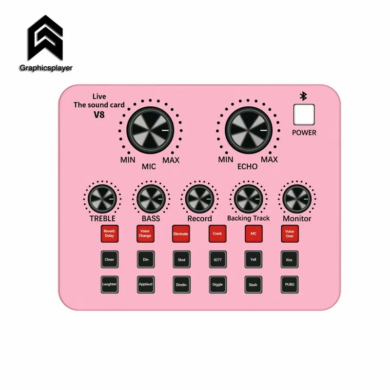Звуковая карта для прямых трансляций, онлайн-видео, развлечения для ПК, мобильный телефон, ОС Android, внешняя звуковая карта V8, синий, розовый, черный