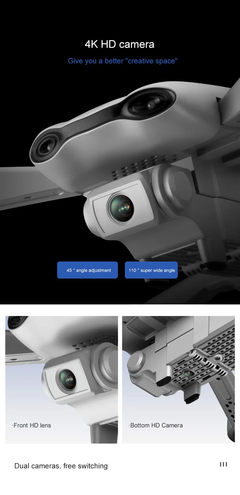 Дрон Радиоуправляемый складной с широкоугольной камерой, 4K1080P, W...