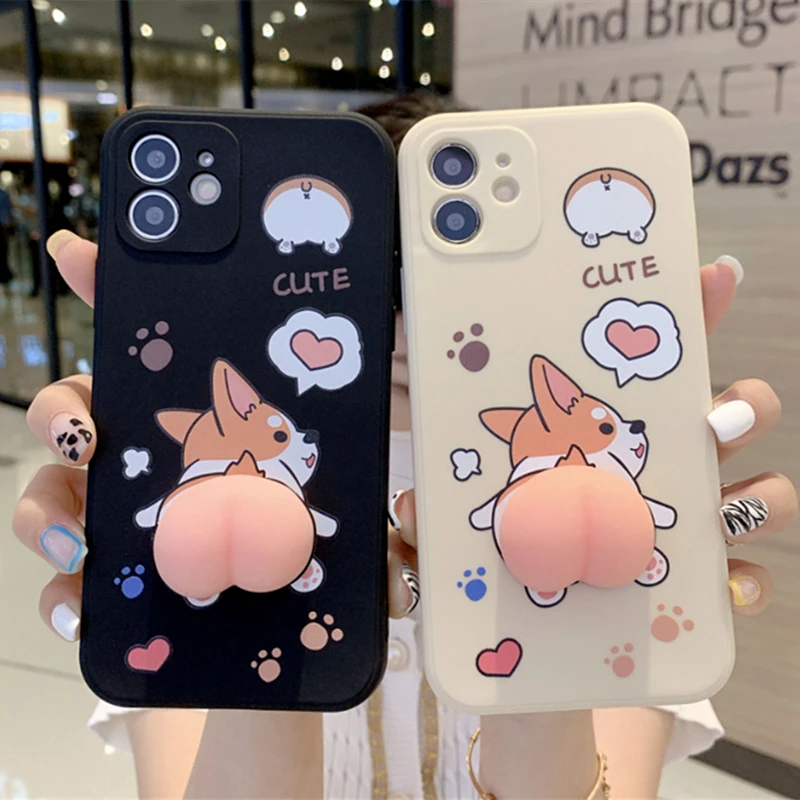3D чехол Corgi Toys для снятия стресса для iPhone 12 11Pro XS MAX XR 7 8Plus милый мягкий эластичный мягкий разминающий чехол