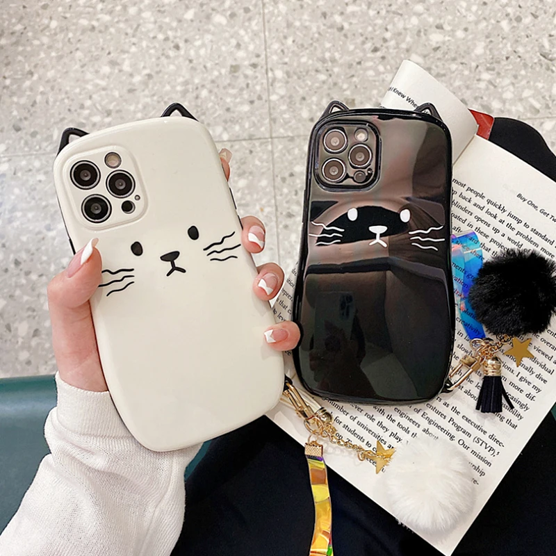 Милый чехол для телефона с кошачьими ушками для iPhone 12 Mini 11 X XR XS Max 7 8 Plus с леопардовым принтом, блестящий мягкий чехол с кулоном для волос